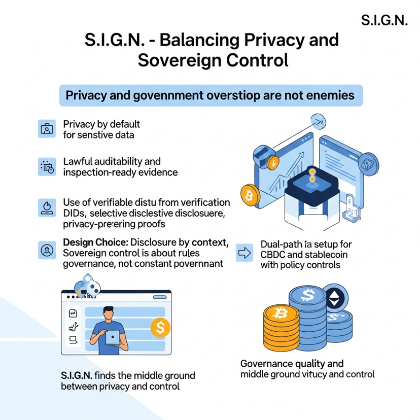 Look, one thing I keep coming back to with SIGN is how it refuses to treat privacy and government oversight like two enemies forced into the same room. Most systems pick a side way too early. They either go full privacy-bro mode so institutions start sweating about who can check anything if things go south, or they crank the control dial to eleven and suddenly “verification” just means surveillance with extra steps. That friction hits hardest in identity systems, payment rails, and benefits programs—exactly where the sensitive stuff actually lives.