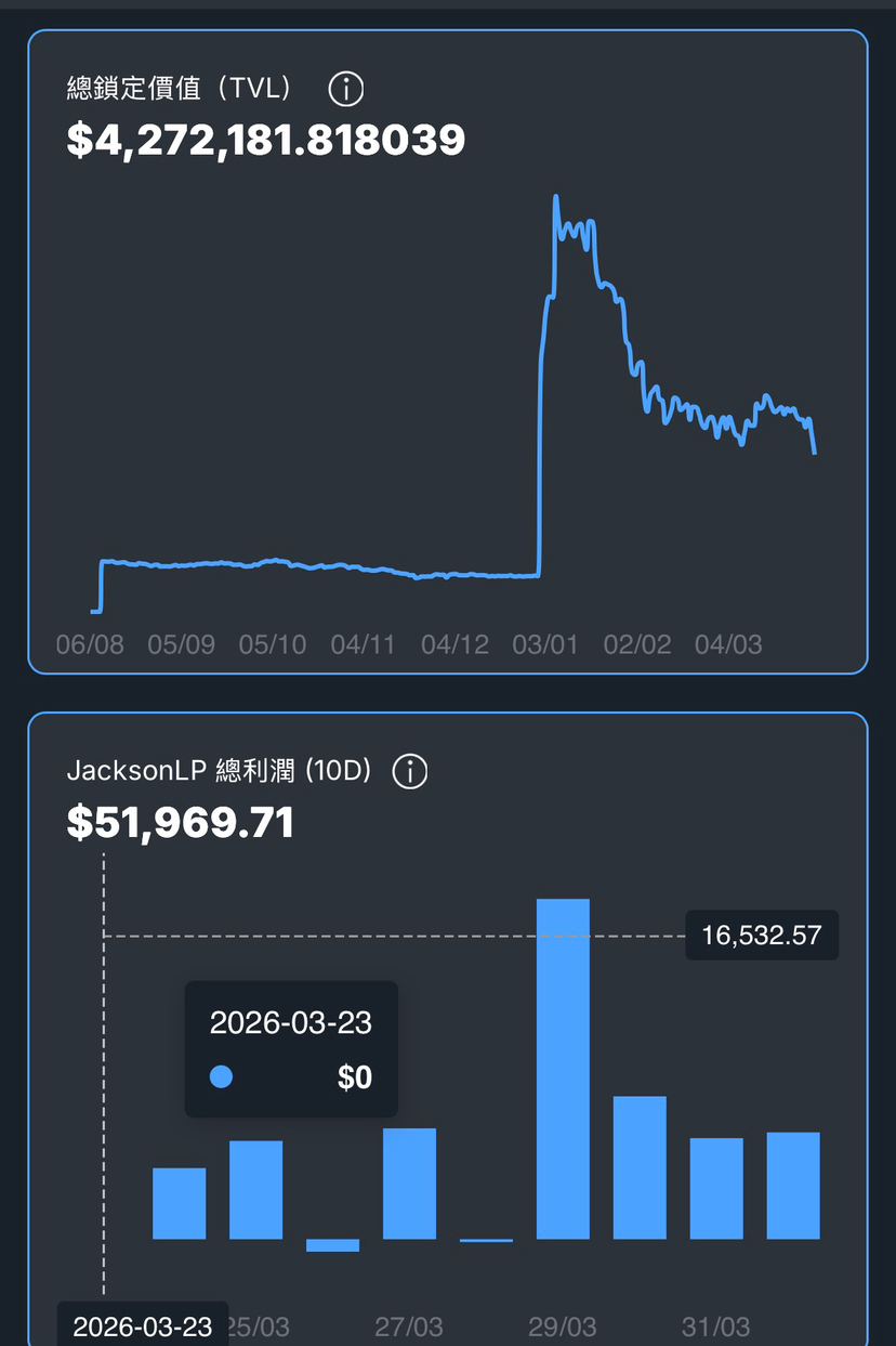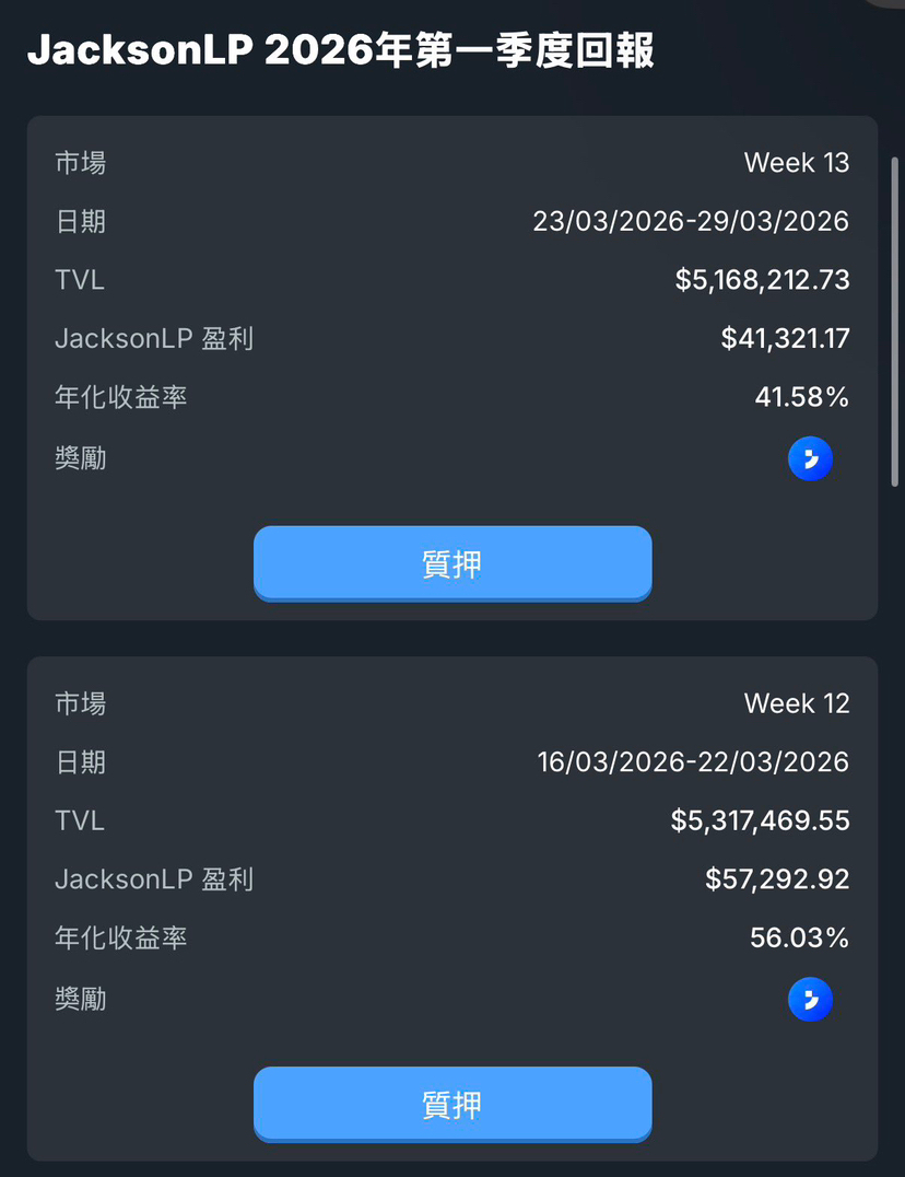 JacksonLP的魅力在于透明与公平:TVL激增百倍后,收益率依然保持高位,资本效率和盈利能力随业务扩张持续提升。新升级的Rollover功能更是让Q2无缝衔接,零空窗期锁定下一轮奖励。感谢@JJJSUI等社区领袖的带领,让大家在Web3浪潮中稳扎稳打。
