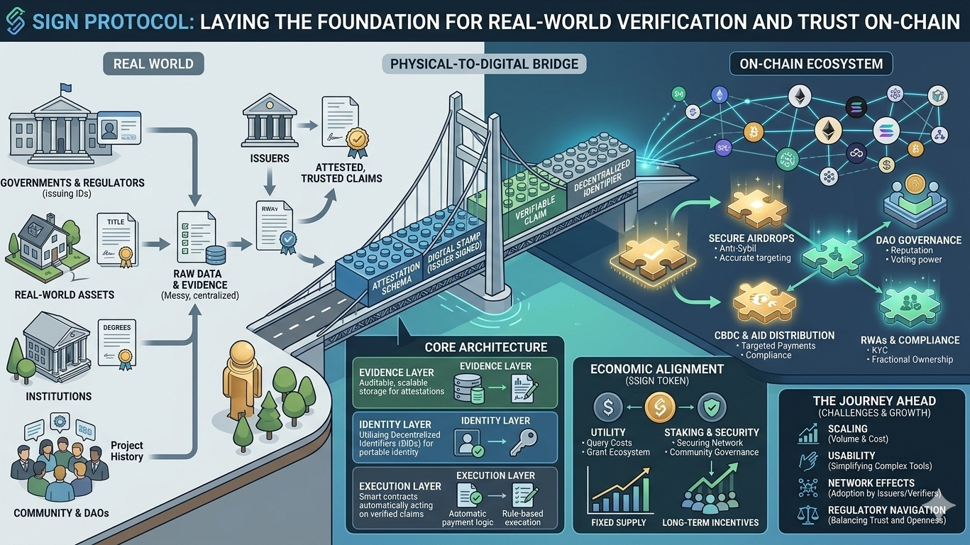 What really gets me thinking is where this could actually land in the real world. We’ve already seen it quietly power some massive distributions across chains, cutting through the usual fraud and paperwork headaches. But the part that excites me more is the sovereign angle—national digital ID programs, targeted welfare, or even CBDC experiments where a verified claim could automatically trigger the right payment at the right time. It could make compliance for real-world assets or cross-border aid feel less like a nightmare and more like a smooth, auditable process. Stepping back, this fits right into the bigger evolution of blockchain. We started with pure permissionless finance for individuals. Now we’re in this messier phase where institutions and governments want verifiable context from the real world without losing the decentralization benefits. Projects like SIGN act as that quiet bridge, standardizing the “why” behind on-chain moves so the execution layers can finally do something useful with it. If it catches on, blockchain might start feeling less like an extra layer and more like invisible, trustworthy infrastructure for the digital economy.