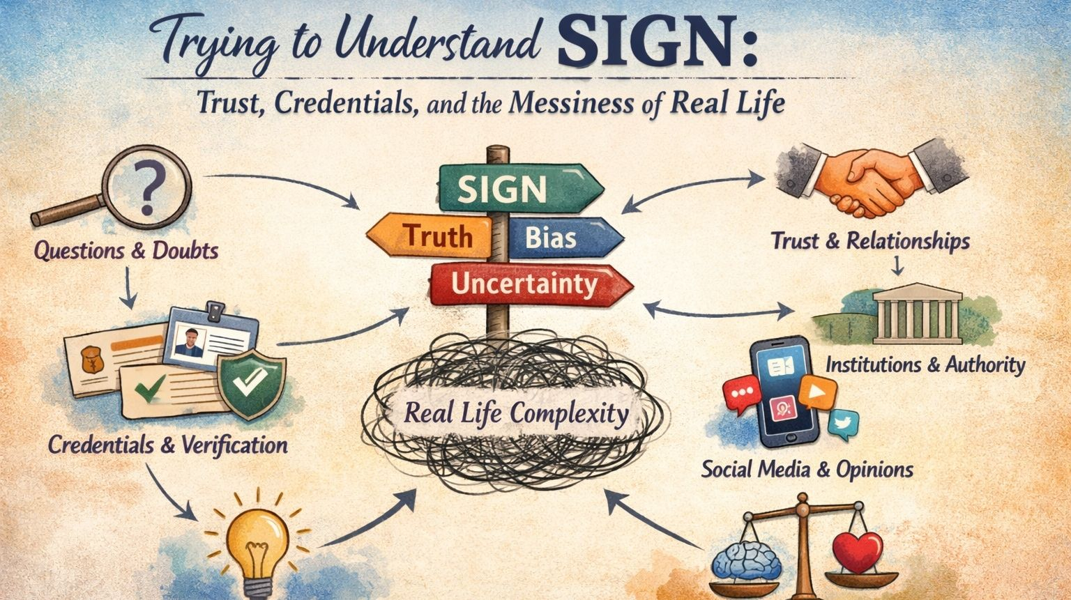 I’ve been thinking about this thing called SIGN, and honestly, I’m still not sure I fully “get” it—but in a way that makes me want to keep circling back to it. You know how sometimes an idea sounds very clean when you first hear it, almost too neat? “A global infrastructure for credential verification and token distribution.” It rolls off the tongue like it already makes sense. But the more I sit with it, the more it starts to feel less like a tidy system and more like something that’s trying to map onto the messy, unpredictable nature of people.