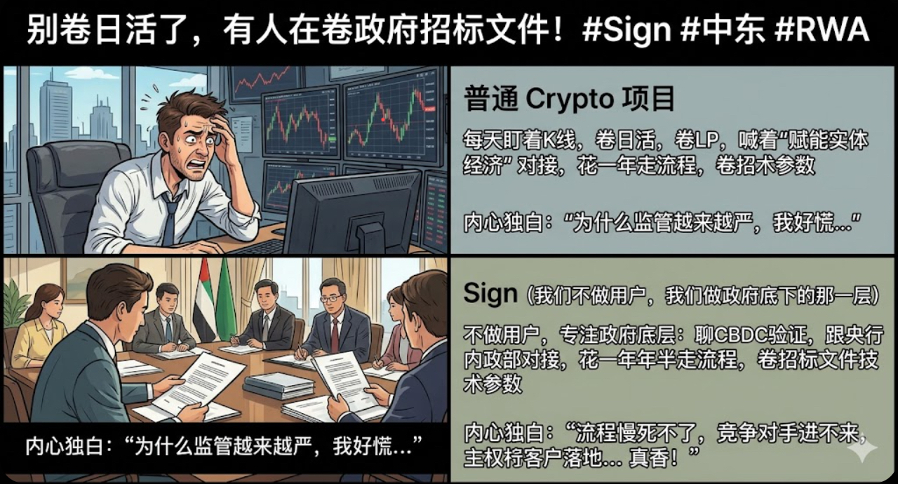 但换个角度想——整个币圈都在卷日活、卷交易量的时候,Sign在卷的是政府招标文件里的技术参数。这个赛道没那么性感,但真跑通了,连根拔的代价谁都付不起。@SignOfficial #Sign地缘政治基建 $SIGN