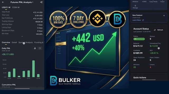 Ich habe mich herausgefordert, ausschließlich mit der Bulker-App auf Binance Futures für nur 7 Tage zu traden. Ich wollte keine "Prognosen" – ich wollte rohe, verifizierte, Live-Kontodaten.