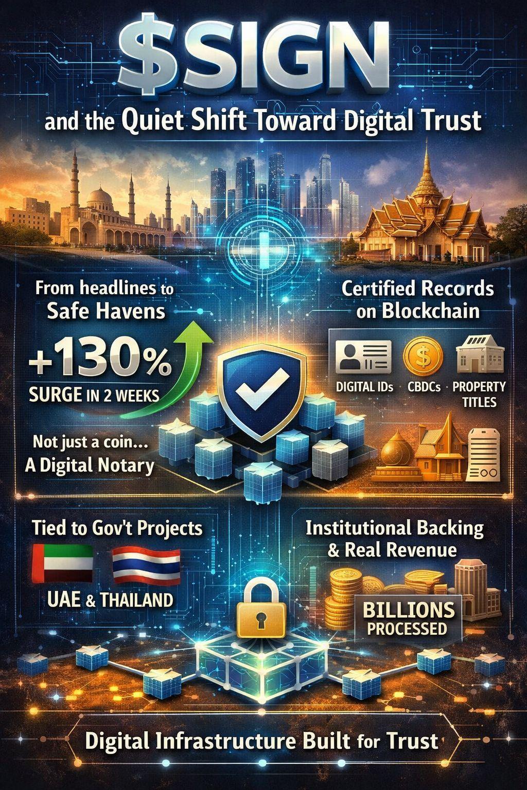 At first glance, it’s easy to dismiss it as another crypto spike. But $SIGN doesn’t behave like a typical meme coin riding hype cycles. Its core idea is actually pretty simple: act like a digital notary. Instead of just moving money, it proves things—ownership, identity, transactions—in a way that can’t easily be altered later.