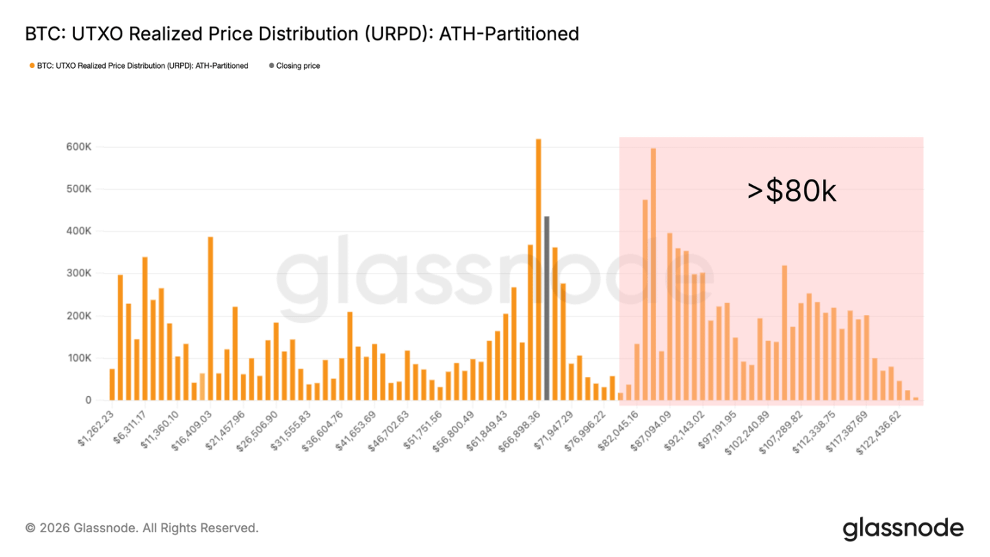 链上数据显示,#BTC 在 80,000 美元到 126,000 美元区间,有一大堆币还没卖出——也就是所谓的 未实现亏损供应💸。这些持币者已经忍受了好几个月的低迷行情,他们的选择很简单: