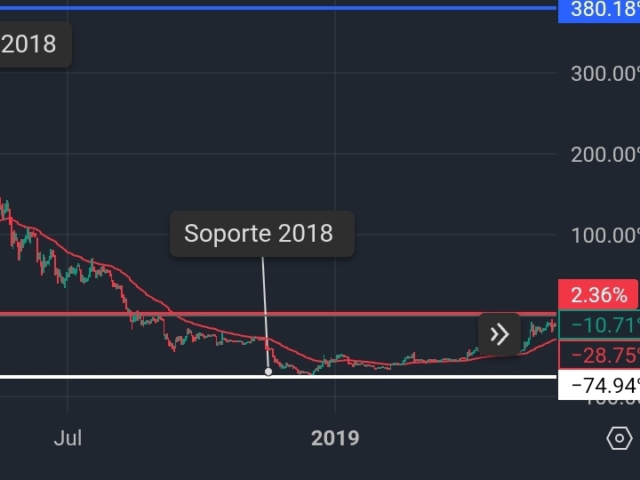 🛡️ 2018-2019 (Mitigación y Polaridad): Tras los máximos, el precio sucumbió en su pico más alto (Resistencia Amarilla histórica). La caída subsequente llevó al precio a atravesar el soporte anterior, transfigurándolo en una resistencia histórica de acero, y creando un nuevo soporte de base más abajo a finales de 2018 y durante 2019.