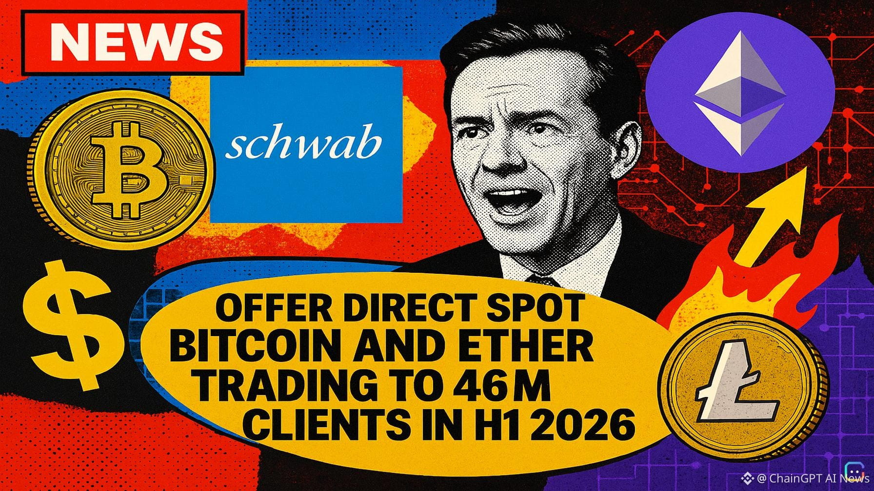 Charles Schwab is preparing to bring direct spot trading of Bitcoin and Ether to a massive pool of investor capital, confirming plans to roll out the service in the first half of 2026. What Schwab will offer - Branded “Schwab Crypto,” the service will be operated through Charles Schwab Premier Bank, SSB, a regulated banking subsidiary. - Clients will be able to buy and sell spot Bitcoin and Ether directly in their existing Schwab brokerage accounts — no separate wallet or third‑party exchange required. Schwab will handle order processing internally. - The launch will be phased: employee testing first, then invited clients, and finally general availability. Early access will be limited to U.S. residents and will exclude New York and Louisiana. Company confirmation and context A Schwab spokesperson told multiple outlets: “We remain on track to launch our spot crypto offer in the first half of 2026, starting with bitcoin and ether.” The move follows several years of preparation during which regulatory uncertainty had delayed such a product. Changes in policy — including the Trump administration’s rollback of certain SEC accounting restrictions and the Federal Reserve loosening bank crypto guidelines — helped clear the path. Market signals and demand Schwab said its crypto site saw a 400% increase in traffic in 2025, with roughly 70% of that interest coming from non‑clients — a strong indicator of untapped demand the firm hopes to capture. At the time of the announcement, Bitcoin traded near $66,864 (about 47% below its all‑time high of $126,080), and Ether was around $2,052 (roughly 59% below its August 2025 peak). Competitive landscape and product roadmap Schwab’s entry could reshape retail crypto access: analysts say Schwab’s scale and distribution might allow it to offer lower fees than many crypto-native exchanges. Morgan Stanley is reportedly preparing a similar push via E*TRADE. Schwab already offers crypto-linked ETFs, Bitcoin futures, and the Schwab Crypto Thematic Index ETF; spot trading is the next step in a deliberate, regulated expansion. The firm has also signaled plans to introduce a stablecoin product following passage of the GENIUS Act. Scale and impact CEO Wurster summed up the company’s intent: Schwab is “ready to compete in spot Bitcoin and Ethereum trading.” With roughly 46 million existing brokerage relationships, Schwab brings a distribution advantage few crypto-native platforms can match — a factor that could materially change how mainstream investors access spot crypto markets. Read more AI-generated news on: undefined/news