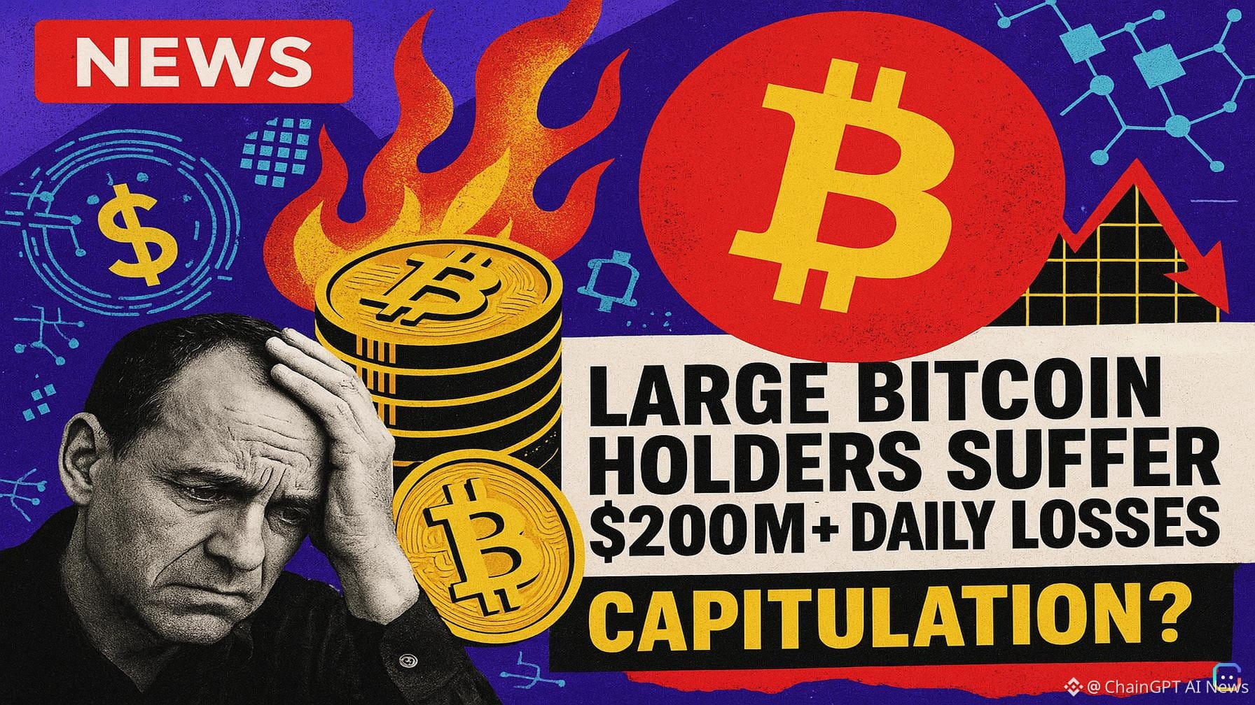 On-chain analytics firm Glassnode says large Bitcoin holders are logging heavy losses — a potential sign of capitulation in the market. What the data shows - Glassnode’s latest X post highlights the Bitcoin Realized Loss metric for two big-holder cohorts: “sharks” (100–1,000 BTC wallets) and “whales” (1,000–10,000 BTC). Realized Loss measures the dollar value of coins sold at a lower price than their purchase price. - The 7-day simple moving average (SMA) of combined realized losses for these groups recently exceeded $200 million per day. - Loss realization spiked sharply after the November and February price crashes, underscoring elevated pain among large holders during those selloffs. Why it matters - Glassnode calls this “typical capitulation behaviour from larger entities.” Historically, major capitulation phases often accompany market bottoms, as coins move from weaker hands to more resolute holders. That pattern suggests the current wave of loss-taking could be part of a cleansing process — but it’s not definitive proof that a bottom has arrived. Other on-chain context - Glassnode also noted Bitcoin is approaching the halfway point to the next block reward halving. The midpoint is block 945,000; the chain currently sits at block 943,495. The next halving is still estimated for around April 2028 and will halve miners’ block subsidy. Market price - Bitcoin has been consolidating recently, trading near $67,000. Takeaway - Large-holder realized losses are elevated and consistent with capitulation dynamics that have signaled past bottoms, but traders should watch price action and additional on-chain signals to judge whether the current stress is sufficient to mark a durable low. Read more AI-generated news on: undefined/news