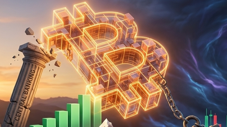 To visualize this complex analysis, we have generated an image that captures Bitcoin's dual nature: a rigid, decentralized protocol navigating a volatile, global market.
