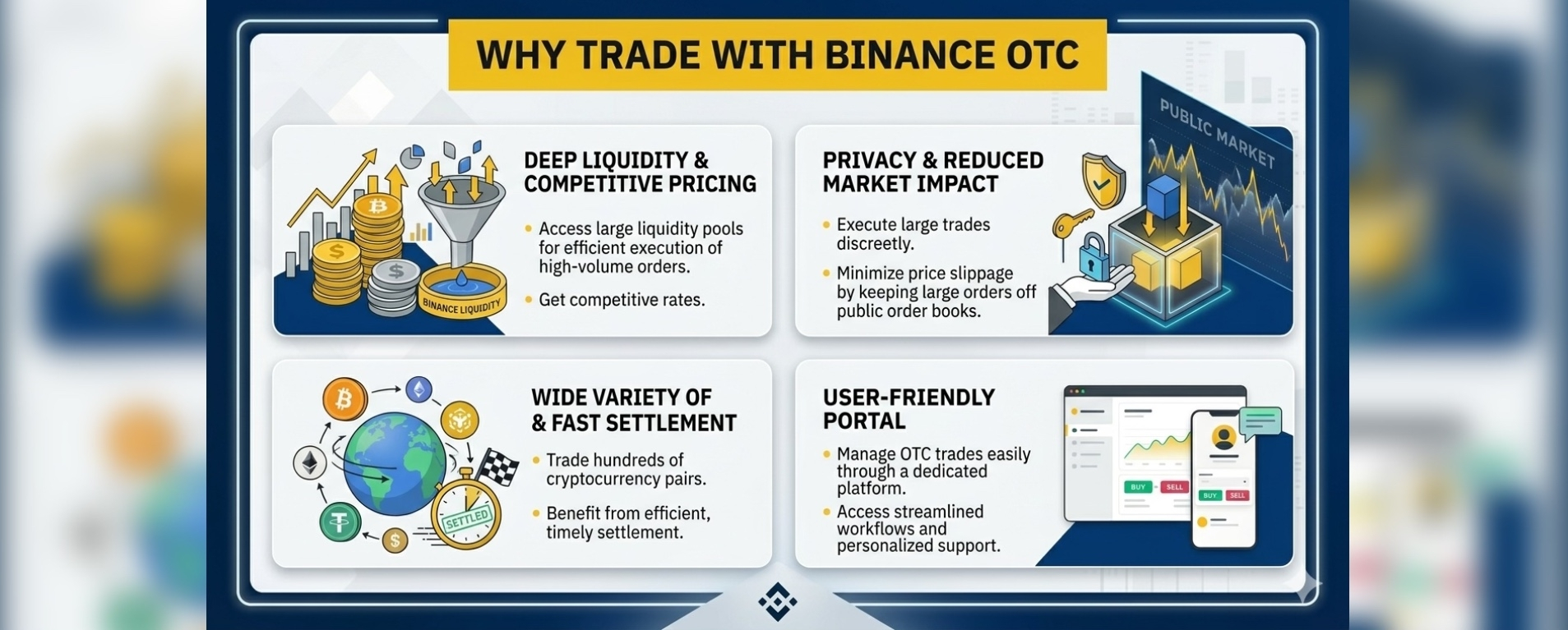 Here is an overview of the key benefits of using Binance OTC for large-volume cryptocurrency trades: