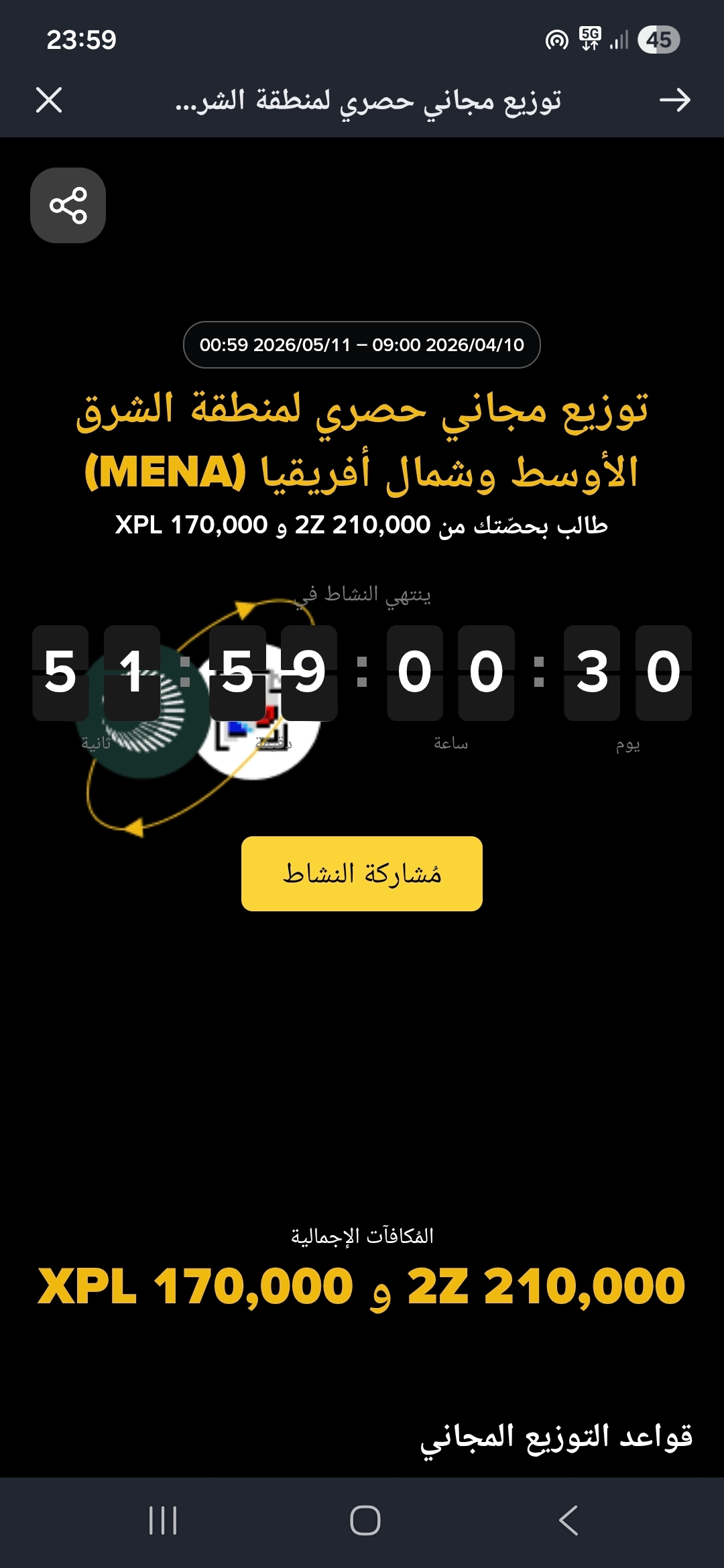 اضغط على "مشاركة النشاط" لزيادة فرصك وتفعيل المطالبة بحصتك.