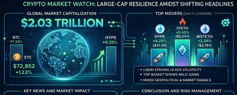 The digital asset landscape currently exhibits a cautiously optimistic trajectory, with the global market capitalization stabilizing around $2.03 trillion. In the past 24 hours, top-tier assets have demonstrated a collective upward bias of 1.61%, signaling sustained institutional and retail interest despite a complex news cycle.