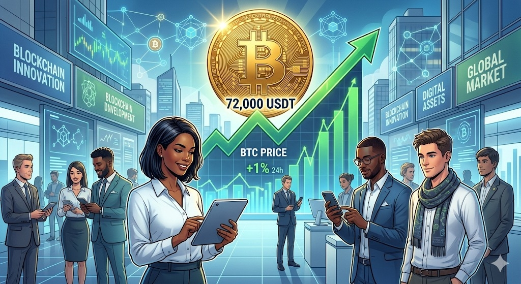 Bitcoin has gone over the 72,000 USDT mark. I think this is a thing. Bitcoin is showing that it is still important in the market. The price of Bitcoin went up by 1 percent in the 24 hours. This means that people who buy and sell Bitcoin are feeling good about it again.