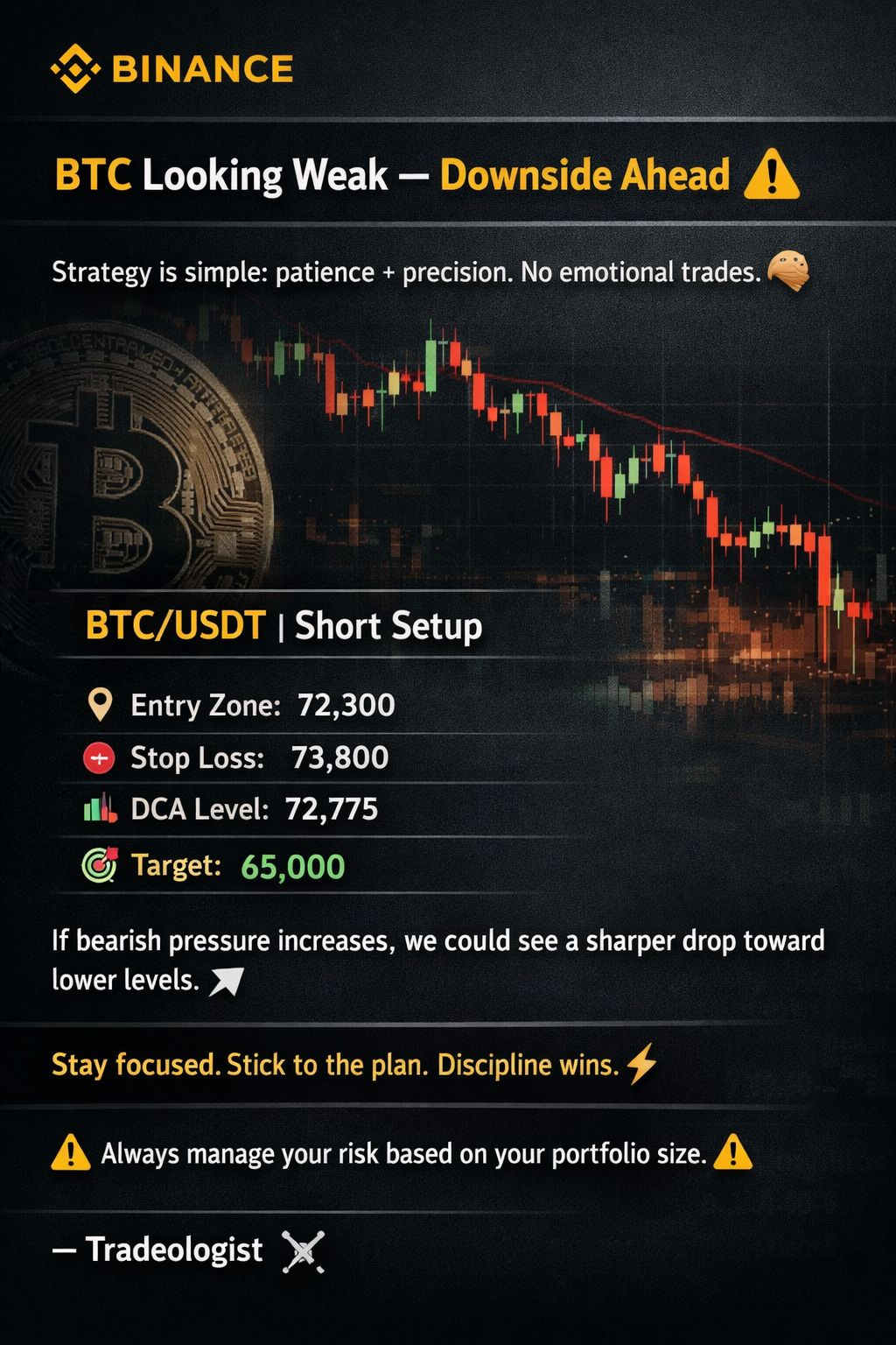 Bitcoin looks weak around current levels — potential downside building. ⚠️