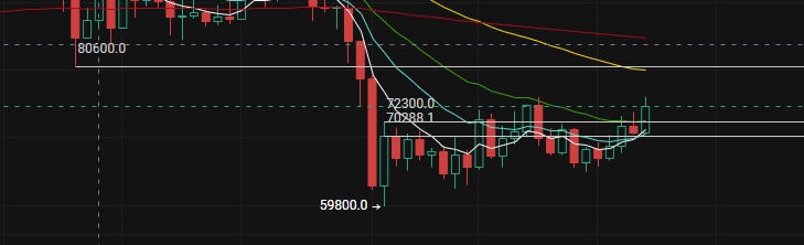 Der gestrige Höchststand entspricht der 2-Tage-EMA52-Linie bei 75800~~auch der relative Widerstand, den ich zuvor analysiert habe