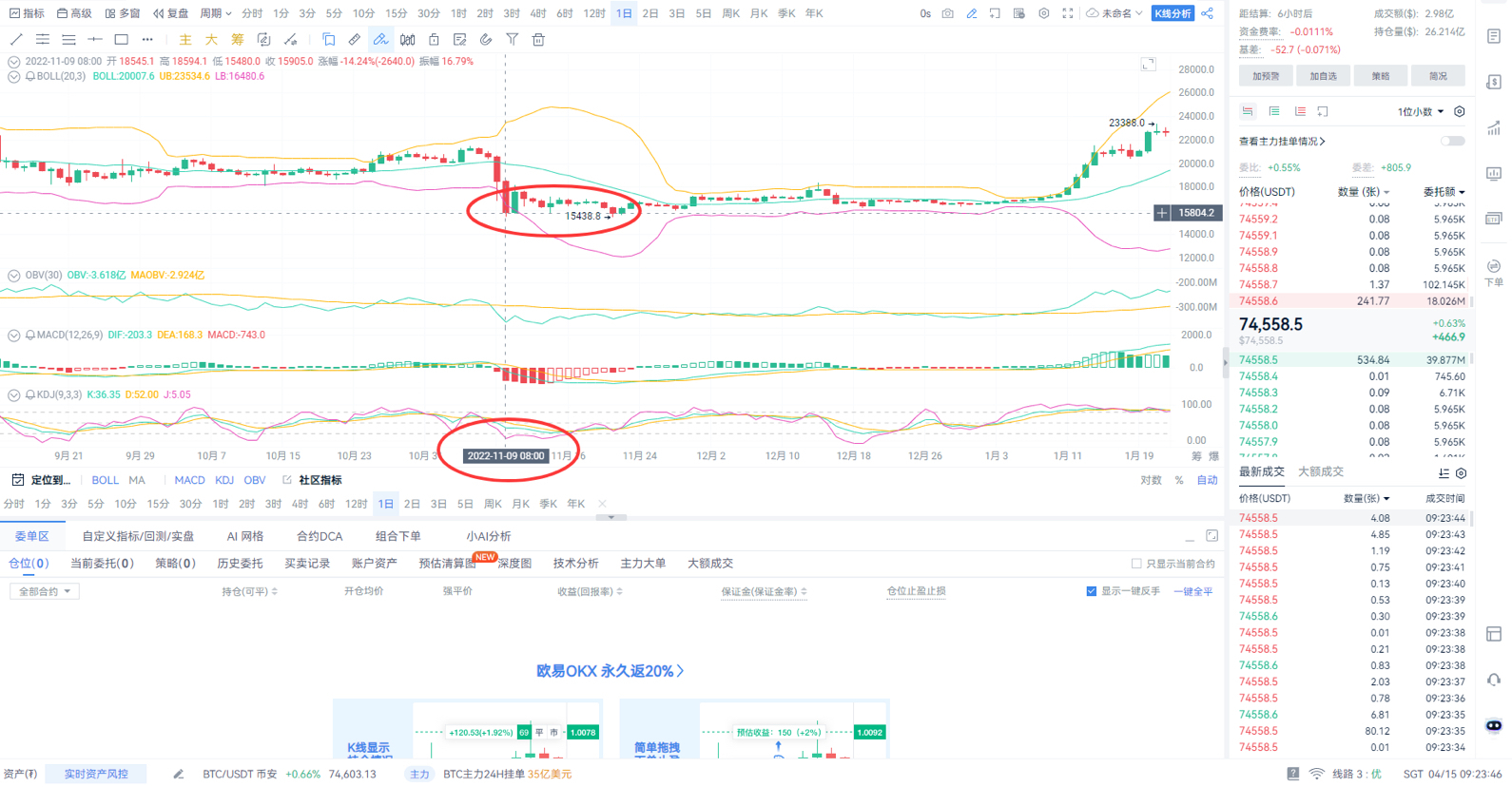合约板块无论多么火热,只要现货市场交易量起不来,没有现货带量上涨,那么市场还是处于熊市,更何况还有世界杯对于币圈流动性的抽离,2022年卡塔尔世界杯比特币也是历史最低点15000附近。(见上图)