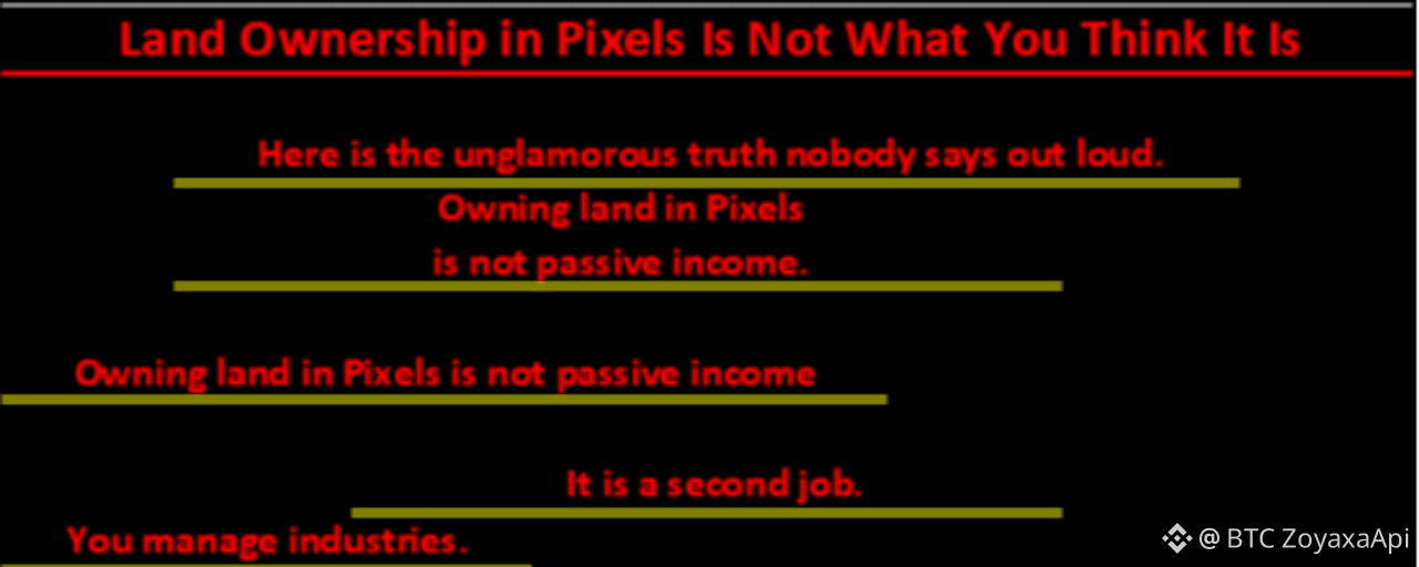 Owning land in Pixels is not passive income. It is a second job. You manage industries. You manage sharecroppers working your land. You decide which industries to run, which to mothball, and which to level. The NFT is not a ticket to earnings — it is a responsibility.
