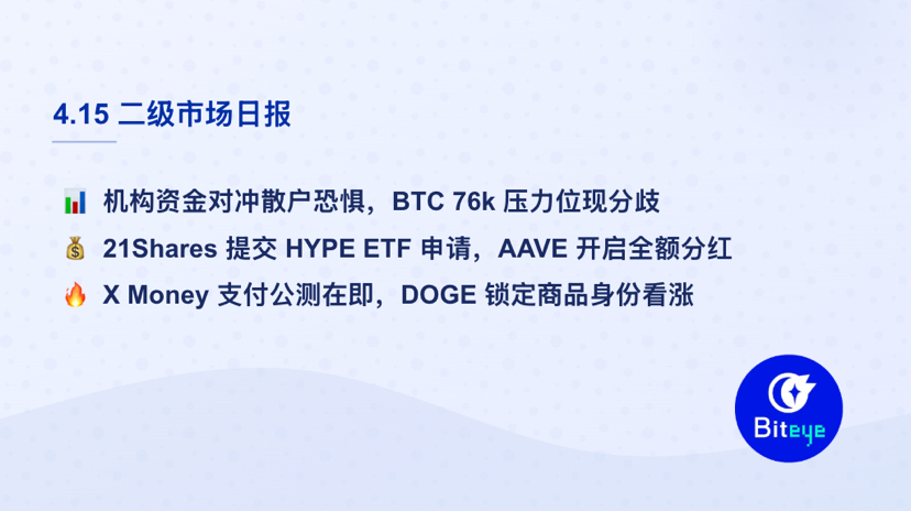 Der Kryptowährungsmarkt befindet sich derzeit in einer Phase der Erholung nach der Bereinigung geopolitischer Risiken. Obwohl Institutionen weiterhin über ETFs Kapital ansammeln, bleibt die Stimmung der Privatanleger extrem ängstlich. Der Derivatemarkt zeigt große Meinungsverschiedenheiten zwischen Bullen und Bären, und bei einigen Altcoins besteht das Risiko einer Korrektur aufgrund von überfüllten Long-Positionen. Bitcoin (BTC) befindet sich im kritischen Bereich von 74.000 - 76.000 US-Dollar und ist insgesamt in einer Phase des "volumenarmen Bodens". Die Meinungen über die zukünftige Entwicklung sind stark geteilt, es wird geraten, sich vor dem öffentlichen Test von X-Zahlungen und dem Start der CME-Futures im Mai zurückhaltend zu verhalten und die kurzfristigen Renditeerwartungen zu senken.