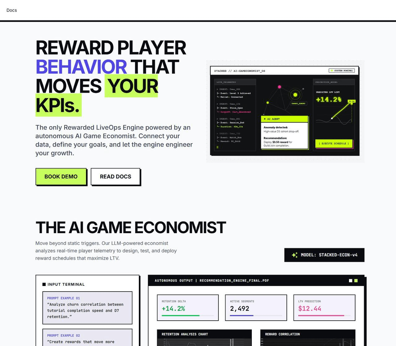 For studio: Stacked helps them supercharge their growth, launch sustainable play-to-earn rewards in one system.