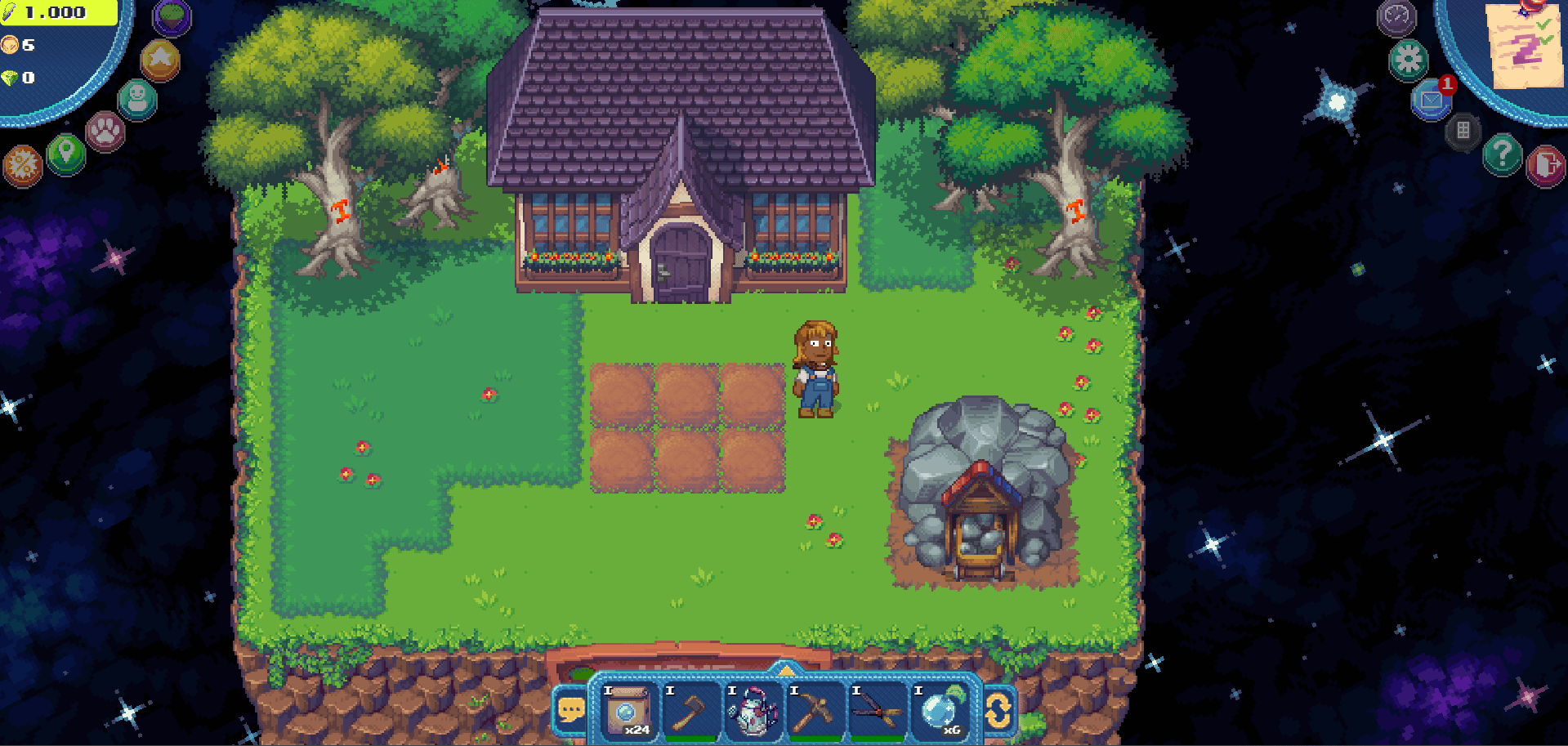ce nu isi prea are rostul in opinia mea e background-ul cosmos rotitor. nu vad conexiunea intre un farming simulator si spatiu. pare mai degraba o decizie estetica random decat ceva care sa serveasca narrativa jocului. dar e un detaliu minor si putem face abstractie.