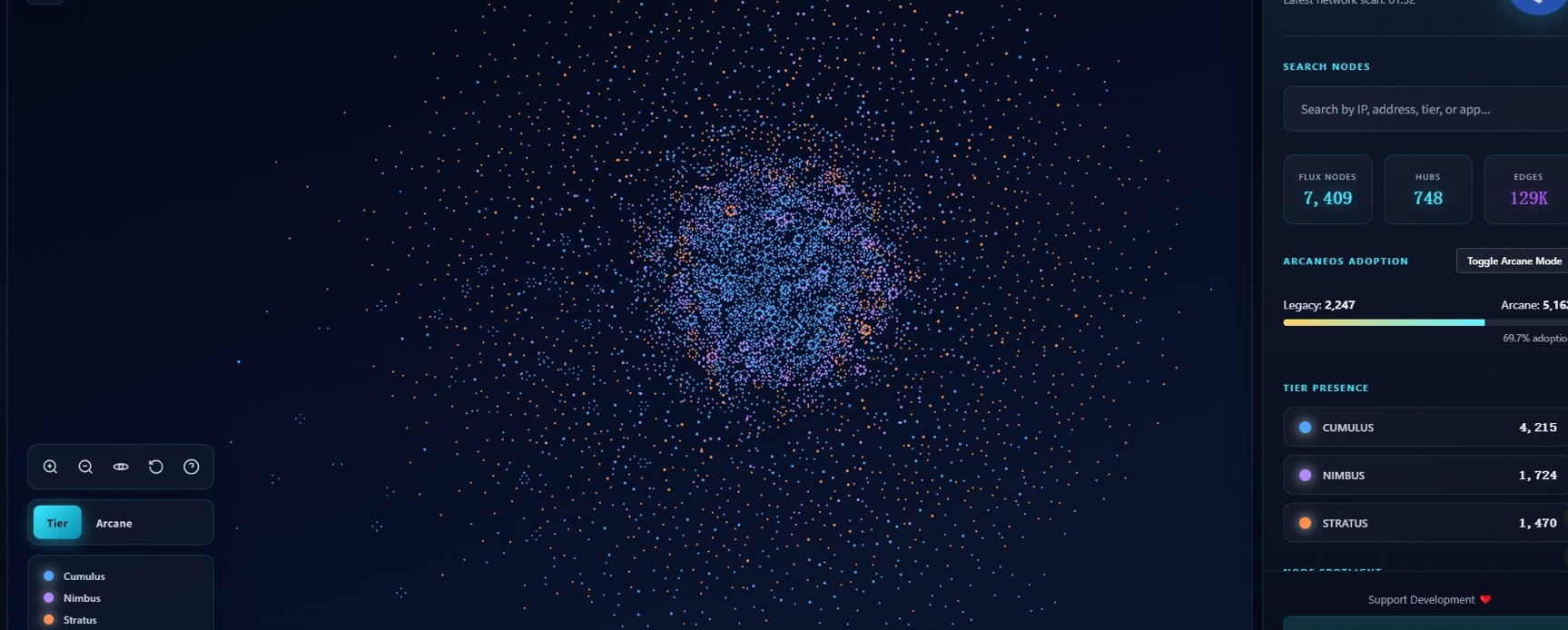 Looking at this network Topographic visualization, it doesn’t feel like a traditional system at all. There’s no center, no single point of control. Instead, it spreads out like a living organism — thousands of nodes forming a dense core, while countless others extend outward, constantly expanding.