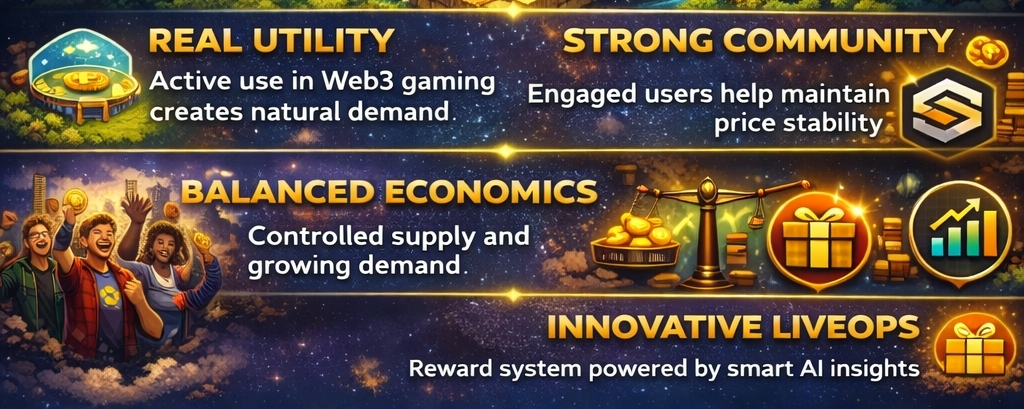 Its biggest strength is its ecosystem. The coin isn’t just traded—it’s actively used in Web3 gaming for farming, trading, and creating assets. This real utility creates natural demand instead of relying only on hype.