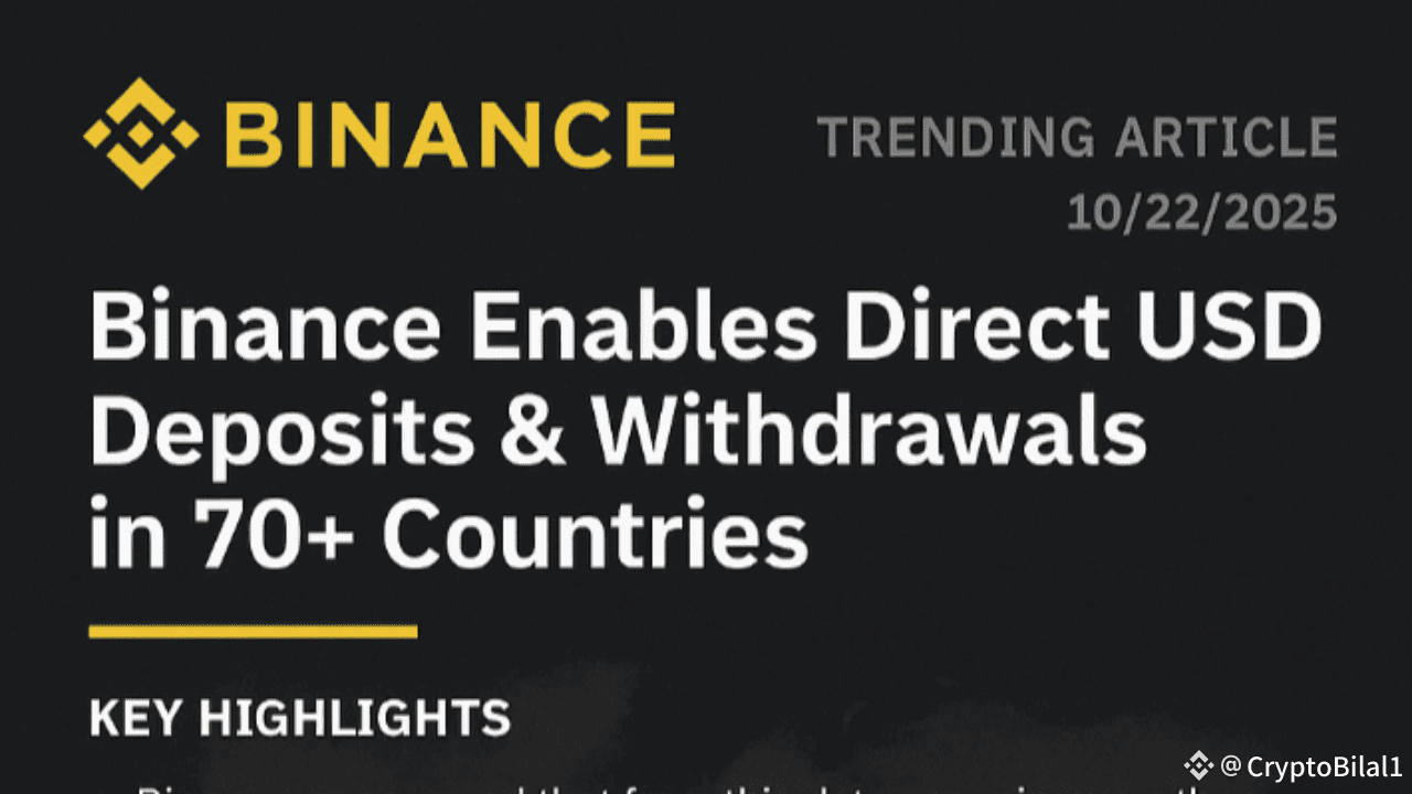 🚨 Schlagzeile: Binance ermöglicht direkte USD-Einzahlungen & Abhebungen in über 70 Ländern