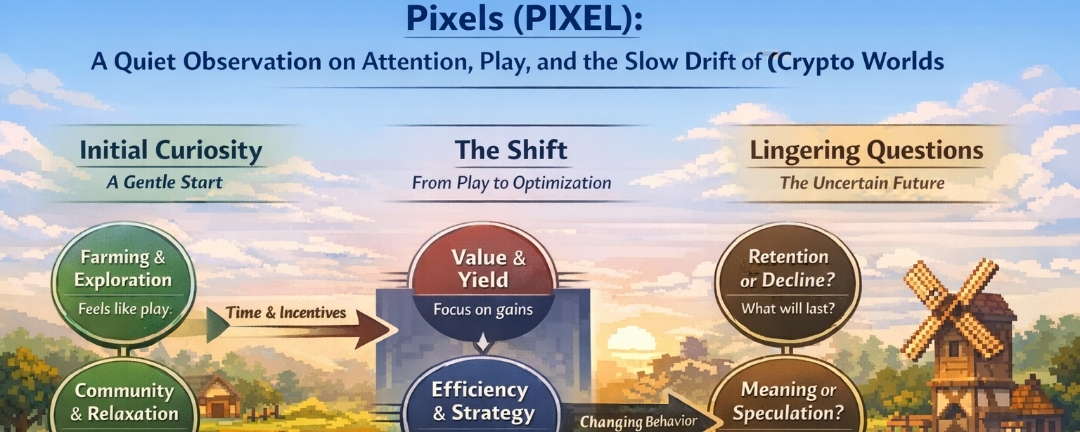 So I keep watching Pixels in that unfinished space where it still feels like a world to some people and a system to others. Those two interpretations will eventually collide or separate. That part always happens, even if the timing is unclear.