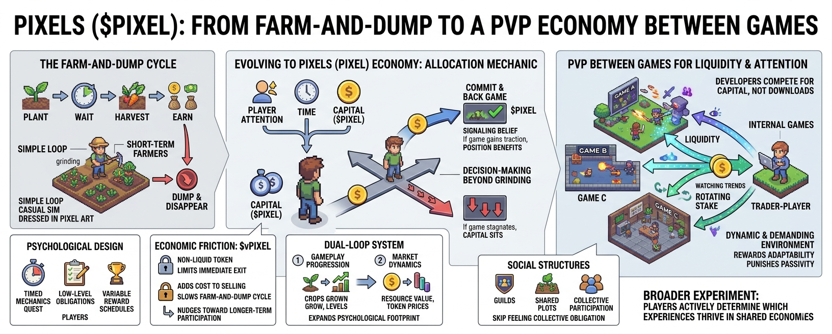 Pixels isn’t really about farming. It’s about allocation—specifically, how players allocate attention, time, and capital across competing games inside the same ecosystem. And once that clicks, the entire experience starts to feel less like a casual sim and more like a live market.