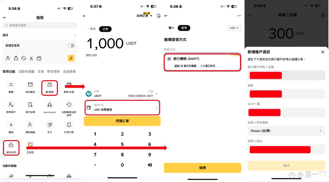 在APP選擇「提領法幣」,選擇「銀行轉帳」,然後輸入你的銀行賬戶資訊,即可確認送出。