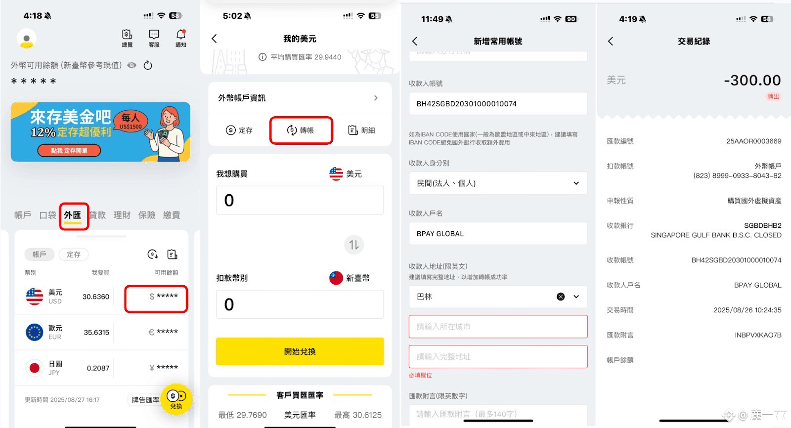 在將來銀行查看自己的外幣帳戶資訊:
