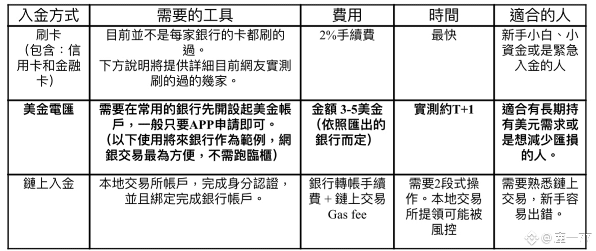 💳 刷卡入金:信用卡(小白友善但費用高)