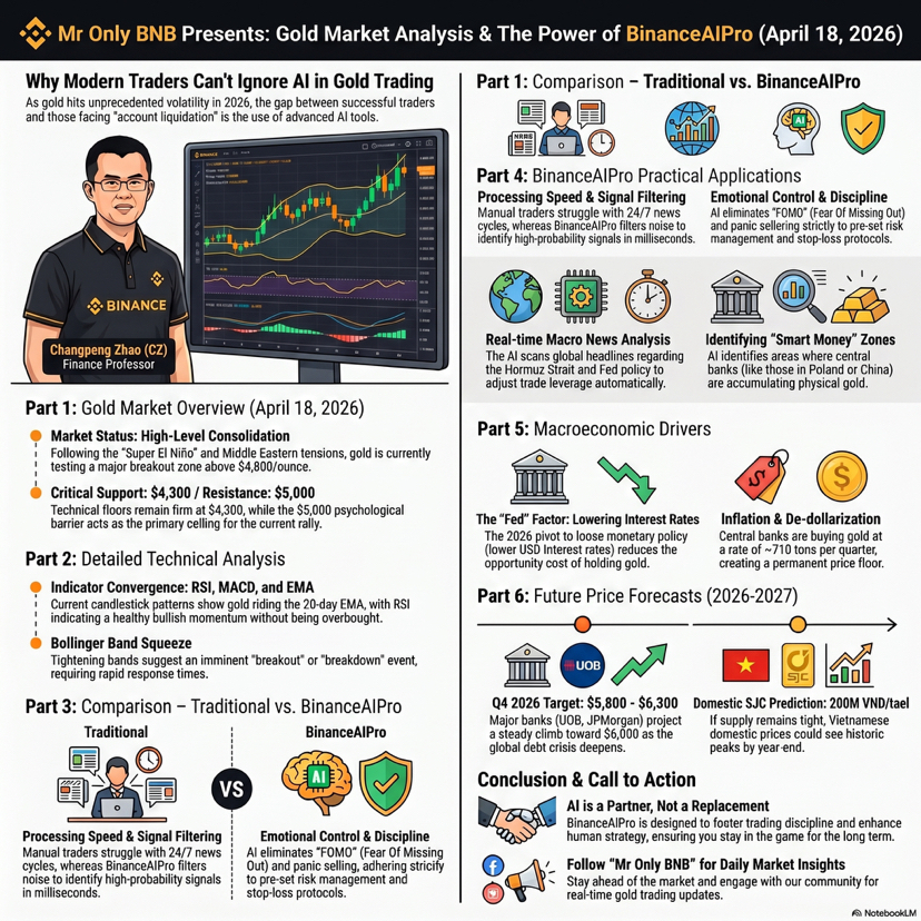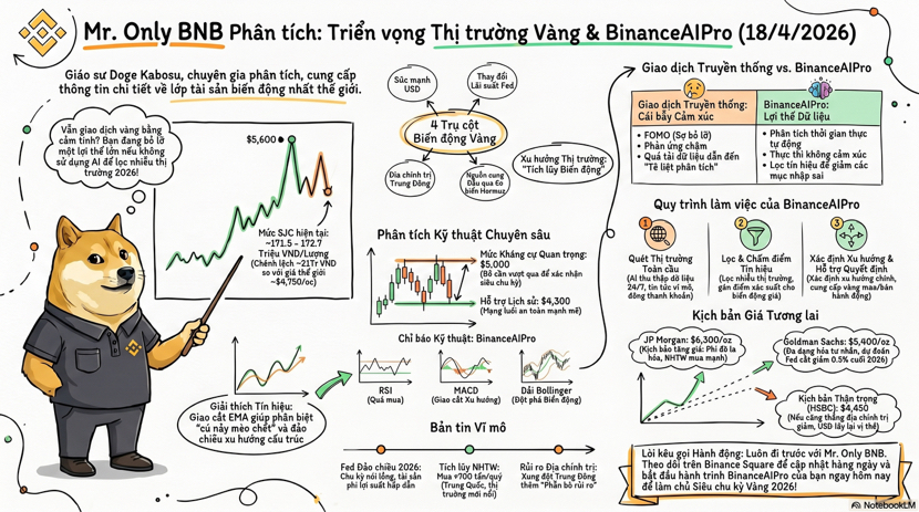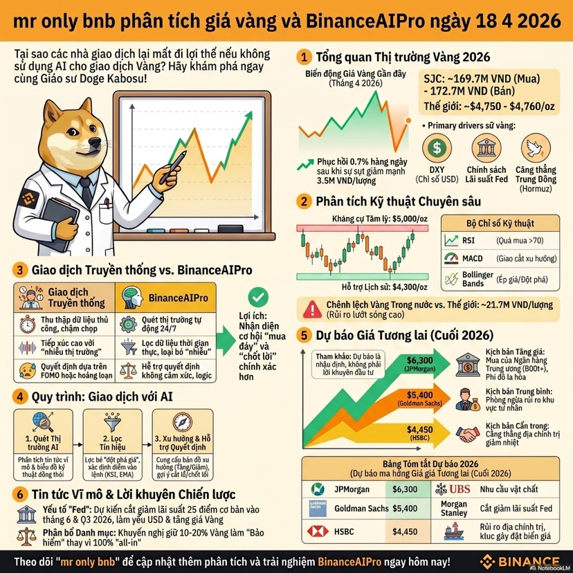Xin chào mọi người, mr only bnb đây, sáng nay nhìn bảng giá vàng xong tôi chỉ muốn nói một câu rất đời là thị trường này đúng kiểu chỉ cần chớp mắt một cái là tâm lý đã đổi màu, và dữ liệu mới nhất cho thấy spot gold đang quanh 4861.32 USD một ounce, tăng 1.5 phần trăm trong phiên và hơn 2 phần trăm trong tuần, trong khi hợp đồng vàng kỳ hạn Mỹ lên 4879.60 USD, nghĩa là bức tranh ngắn hạn của vàng hôm nay vẫn nghiêng rõ về lực mua chứ không phải kiểu tăng cho vui rồi tắt điện ngay lập tức. Lý do cũng khá quen mặt với anh em trader lâu năm là đồng đô la yếu hơn, giá dầu hạ nhiệt sau các tín hiệu liên quan tới eo biển Hormuz, và kỳ vọng cắt giảm lãi suất được hồi sinh, tất cả cộng lại tạo thành một bệ đỡ khá đẹp cho vàng vì đây là tài sản không sinh lãi nên mỗi khi thị trường bớt sợ lạm phát và bớt áp lực lãi suất thì vàng lại được ưu ái như người bạn cũ luôn xuất hiện đúng lúc. Nếu nhìn theo kiểu truyền thống, giao dịch vàng là một quá trình rất thủ công và khá mệt não, bạn phải tự đọc tin, tự lọc nhiễu, tự mở chart, tự soi vùng hỗ trợ kháng cự, tự đo cảm xúc của thị trường rồi cuối cùng vẫn phải quyết định bằng chính cái đầu của mình, nghe thì rất oách nhưng thực tế nhiều lúc giống một người gác cổng trực đêm hơn là một nhà giao dịch có hệ thống. Tôi từng ở đúng cái trạng thái đó, mở quá nhiều tab, đọc quá nhiều bình luận, cuối ngày lại thấy mình biết nhiều thông tin hơn nhưng ra quyết định thì chậm hơn, và đó là lúc tôi hiểu ra một insight rất quan trọng, trong trading thứ giết tài khoản không phải là thiếu thông tin mà là thừa thông tin nhưng thiếu trật tự. Từ khi tôi đưa Binance AI Pro vào quy trình làm việc, tôi bắt đầu thay đổi cách tiếp cận theo hướng ít cảm tính hơn và có cấu trúc hơn, vì theo thông báo chính thức của Binance, Binance AI Pro là một trợ lý AI dạng beta có thể hỗ trợ phân tích giá thị trường, thực hiện lệnh spot và perpetual, nhận diện phân bổ token của ví on chain và chạy các chiến lược giao dịch tùy chỉnh, đồng thời tài khoản AI được tách biệt với tài khoản chính và khóa API AI không có quyền rút hay chuyển tiền, giúp giảm rủi ro vận hành trong quá trình sử dụng.