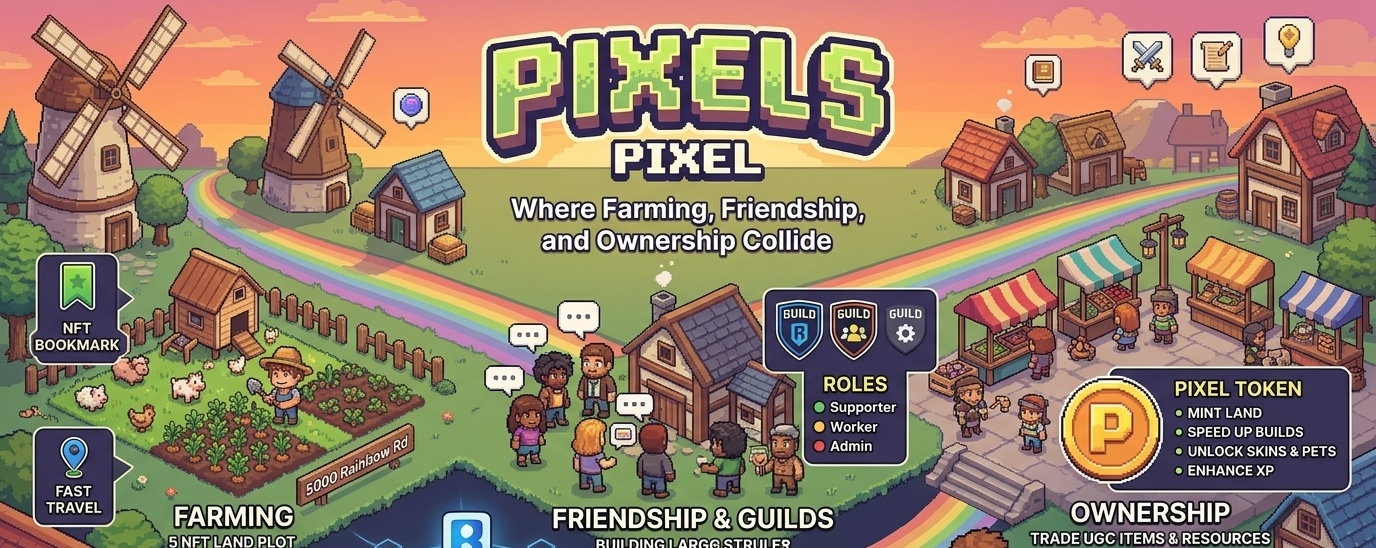 Pixels works because it understands that a world becomes sticky when several kinds of motivation overlap. Some people will come for farming. Others will care about land. Others will chase guild status, reputation, or the aesthetic pleasure of building something that looks unmistakably theirs. The game gives each of those motives a place to live instead of forcing everyone through one narrow progression ladder. Ronin’s infrastructure helps keep that experience smooth, while Pixels’ own systems make sure the world still feels like a community rather than a spreadsheet. That is a difficult balance to hold. Too much game, and the ownership layer disappears. Too much ownership, and the game becomes cold. Pixels sits in the middle with unusual confidence.