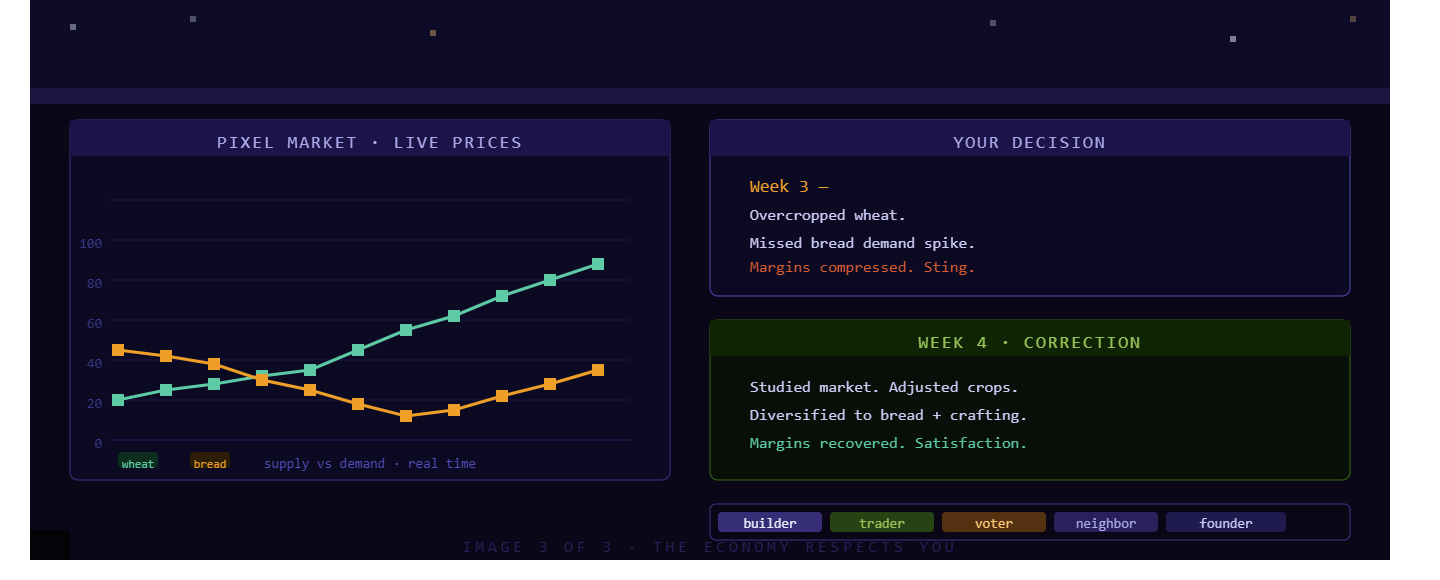 No other game ever made me feel the real sting of a bad decision : or the satisfaction of fixing it. Pixels taught me how economies actually work, not just how they look in a textbook.
