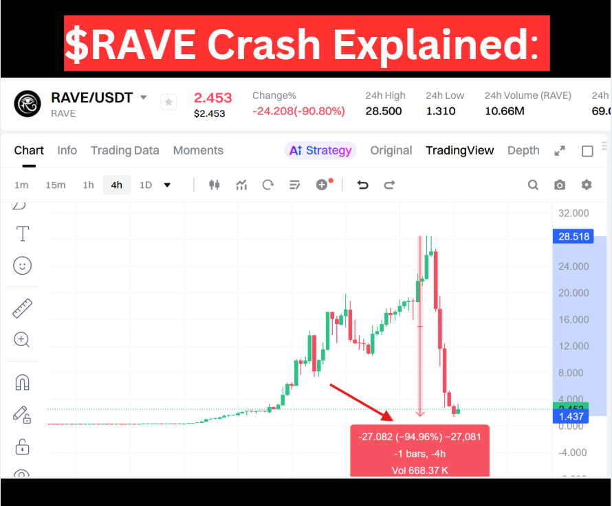 Der jüngste $RAVE Zusammenbruch ist ein Lehrbuchbeispiel für ein Pump-and-Dump-Schema, bei dem Insider oder frühe Halter den Preis künstlich in die Höhe treiben und dann an der Spitze aussteigen, während Einzelinvestoren mit hohen Verlusten zurückgelassen werden.