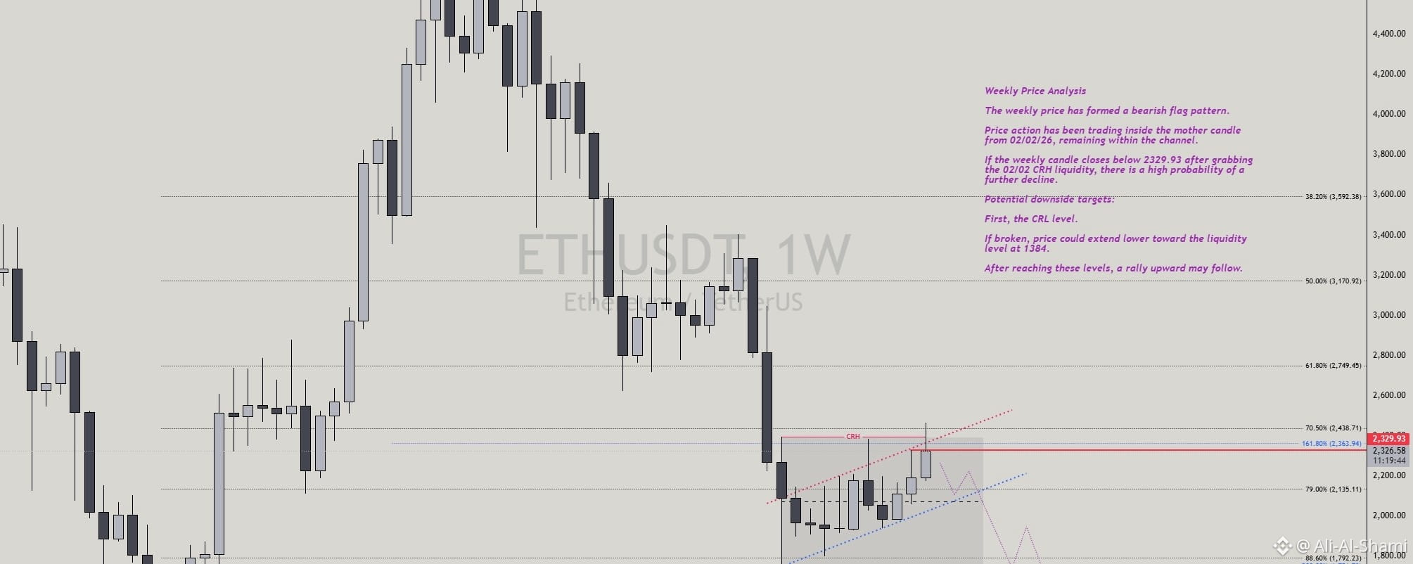 Wenn die wöchentliche Kerze unter 2329,93 schließt, nachdem sie Liquidität CRH 02/02 erhalten hat, besteht eine hohe Wahrscheinlichkeit für einen weiteren Rückgang.