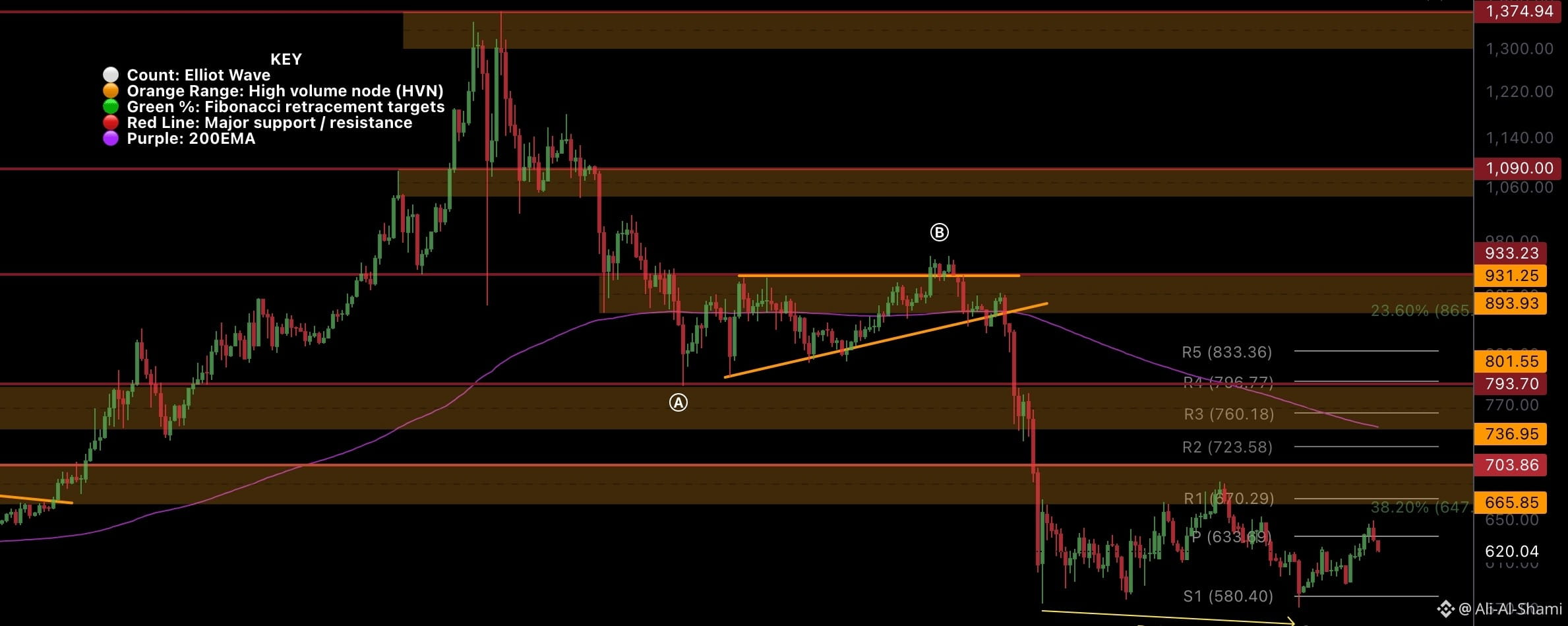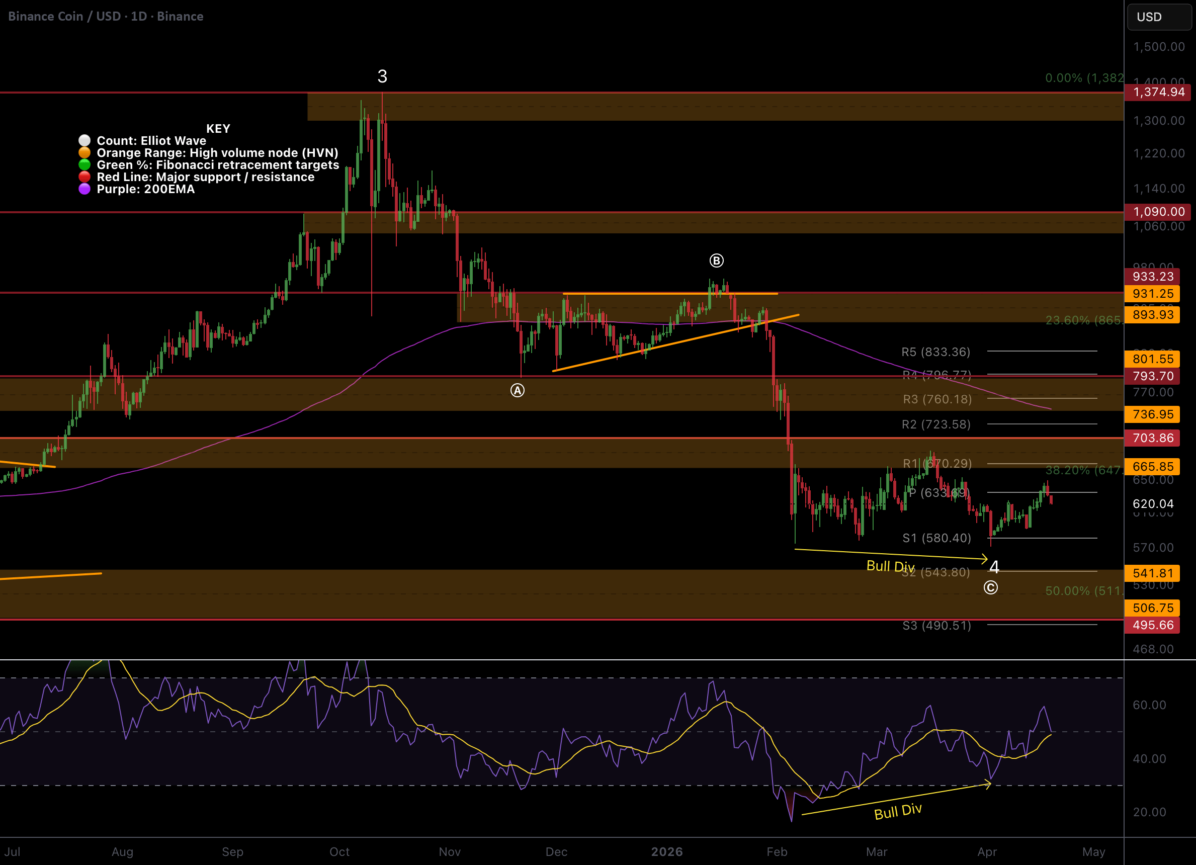 BNB hängt im Bereich am Boden seiner gesamten Korrekturstruktur.