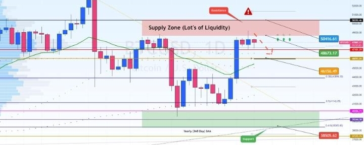 Since that rejection, the structure has started to weaken. Instead of higher highs, we are now seeing lower highs forming, while bullish candles are losing strength and momentum is fading. This is often how reversals begin—not with a sudden crash, but with a gradual slowdown.