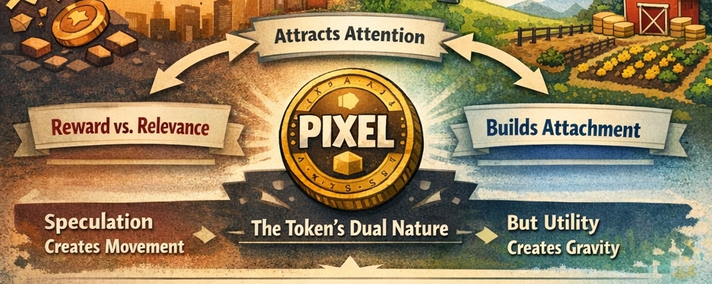 Not simply because it is a gaming token, and not simply because it belongs to Pixels, one of the more visible names in crypto gaming. What makes PIXEL interesting is that it sits at the intersection of two very different forces. One is speculative demand, which is fast, emotional, and highly visible. The other is utility-driven demand, which is quieter, slower, and often much more important. One creates movement. The other creates gravity.