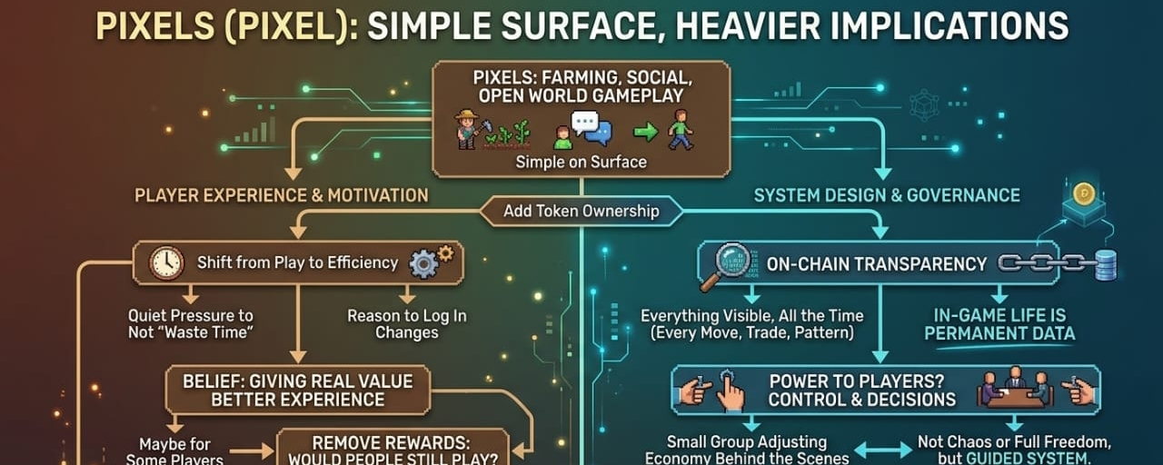 At its core, Pixels presents itself as a relaxed, social farming game. Players plant crops, explore, and build. The experience feels seamless, responsive, and alive. That alone tells you something critical: it cannot be fully on-chain. Blockchains, even high-performance ones, simply don’t support the kind of low-latency, high-frequency interactions required for real-time gameplay at scale.