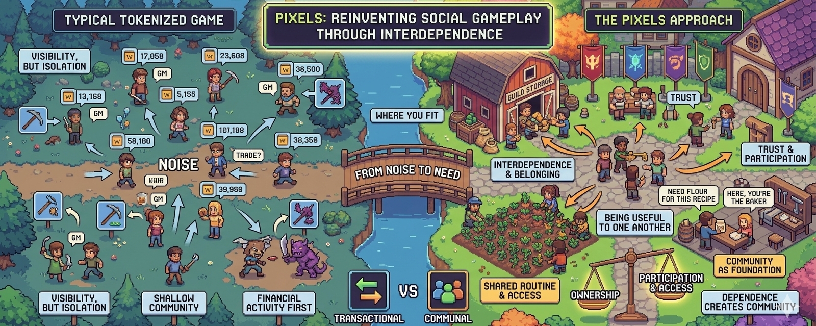 I think that is why Pixels feels more social than most tokenized games. It is trying to create interdependence, not just activity. It is trying to make players useful to one another, not just visible to one another. That may sound like a small difference, but in practice it is huge. Visibility creates noise. Dependence creates community.