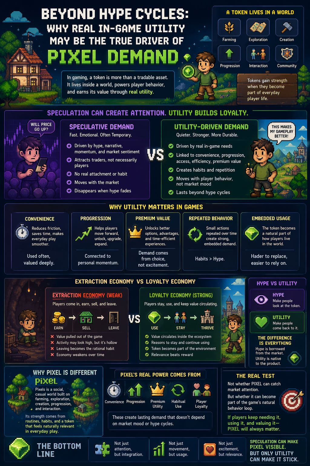 A player who buys PIXEL because they think the chart looks good is participating in speculative demand. A player who keeps using PIXEL because it improves their in-game experience is participating in something much more durable.