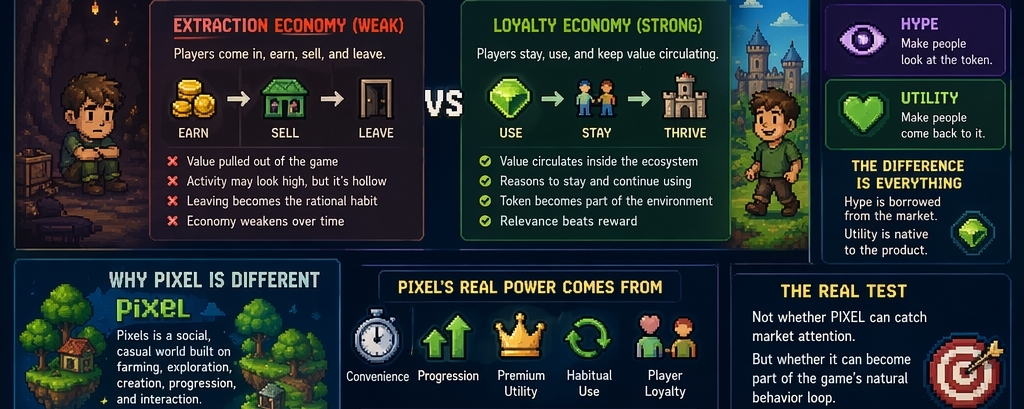 The long-term strength of PIXEL does not come from whether people can create short bursts of excitement around it. It comes from whether Pixels can make the token feel naturally relevant inside the everyday life of the game.