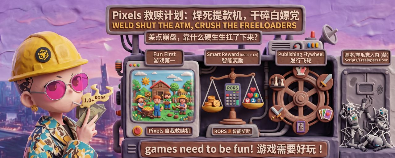 Dieses Bild kommt mir so bekannt vor, es erinnert mich sofort an Pixels 2024. Damals war #pixel definitiv ein Hochlauf, die täglichen aktiven Nutzer (DAU) explodierten, überall waren kleine Figuren. Doch so schick es auch aussah, im Hintergrund war es düster. Die Studios waren überflutet mit Skripten, überall „Goldfarm-Maschinen“, die gnadenlos abgreifen. Das Team war von den Inflationsbergen erdrückt, und damals haben die Leute in der Community täglich geschrien: Wie stabil ist der Preis? Wird das Wirtschaftsmodell zusammenbrechen?