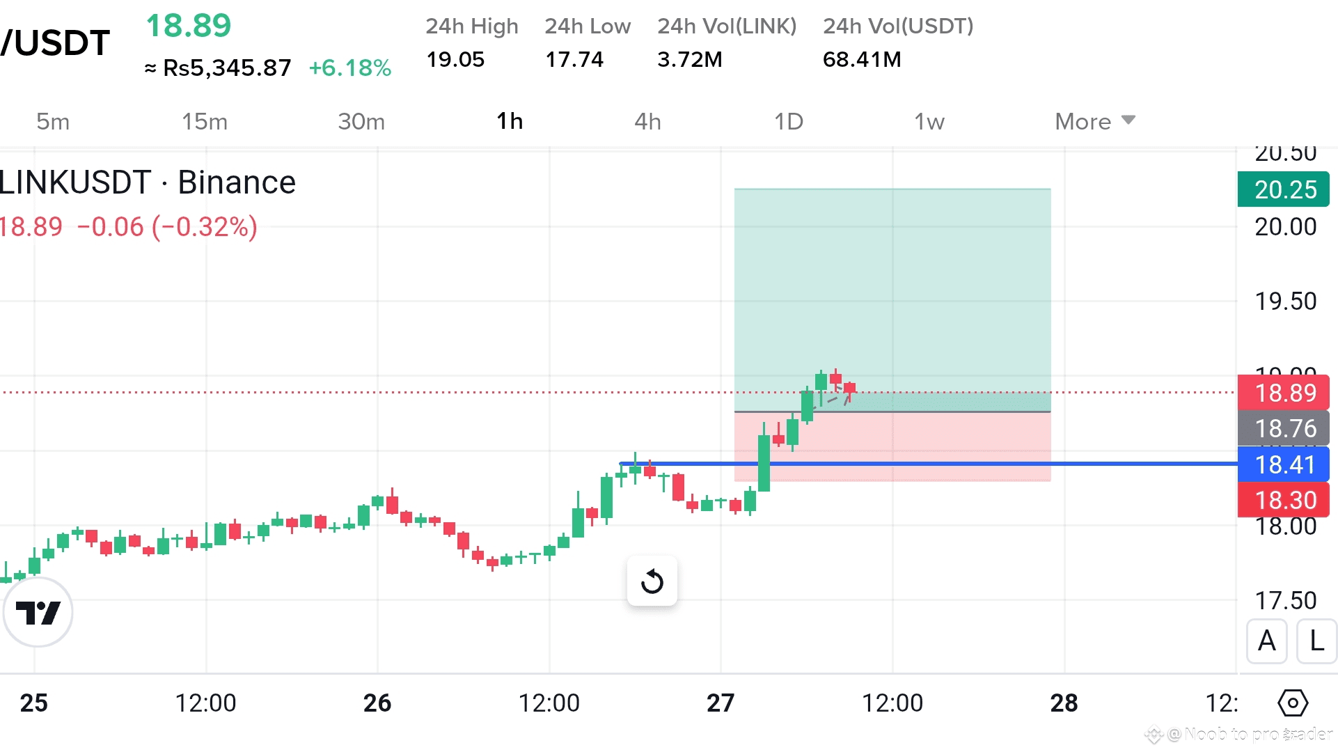 Pichle kuch dino se LINK $17.80 â $18.50 ke beech ek tight range me trade kar raha tha. Lekin ab scene change ho gaya hai â price ne $18.70 â $18.95 ka resistance tod diya hai, jahan pe pehle market baar-baar reject ho raha tha.