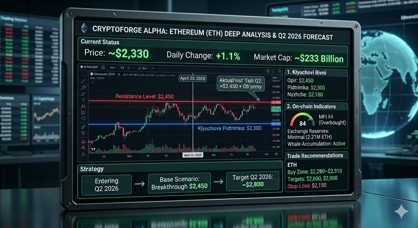 Ціна: ≈$2,330 (на 23.04.2026) (+1.1% за добу).