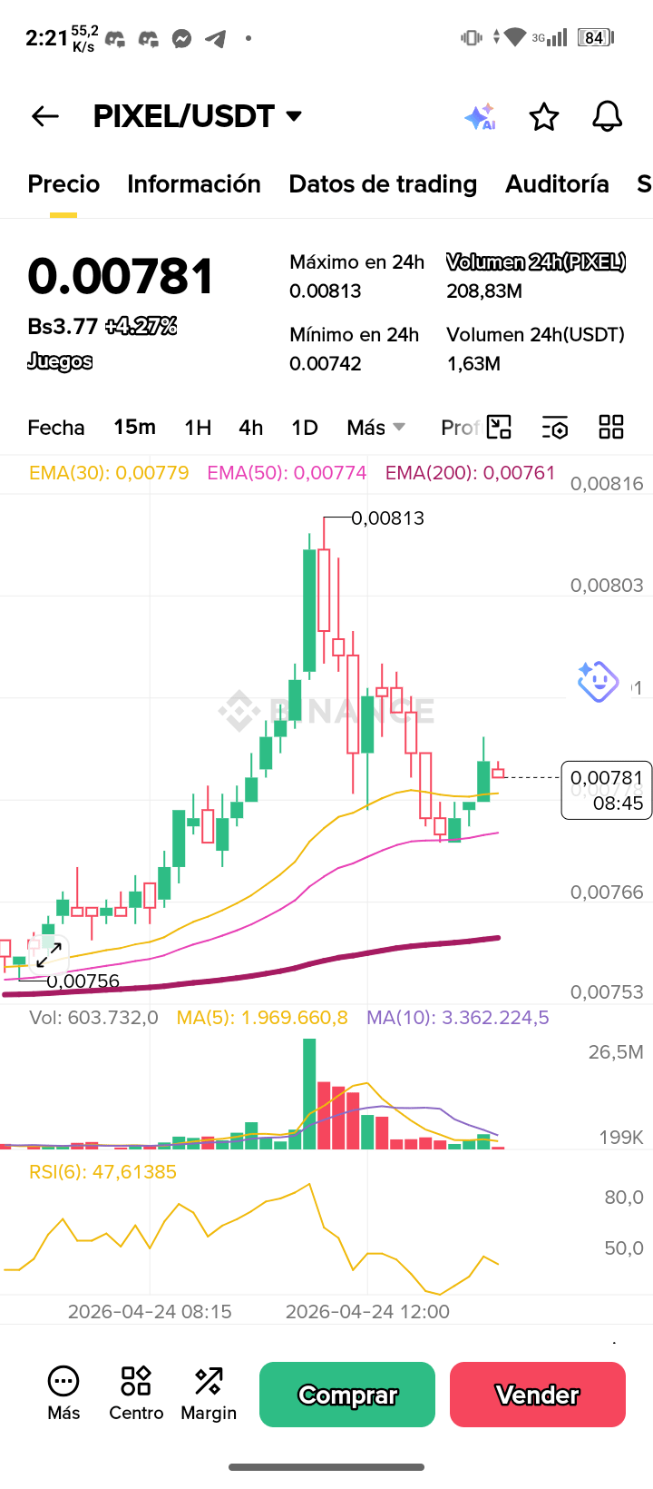Desde una perspectiva técnica, el par $PIXEL /USDT muestra señales de consolidación saludables. Tras un impulso reciente hacia los 0.0081, el precio ha buscado apoyo en la EMA de 50 periodos en temporalidades cortas, permitiendo que el RSI se resetee a niveles neutrales (alrededor de 47). Esto suele ser la antesala de un nuevo movimiento hacia arriba, ya que la presión de venta se está agotando mientras el soporte institucional se mantiene firme.