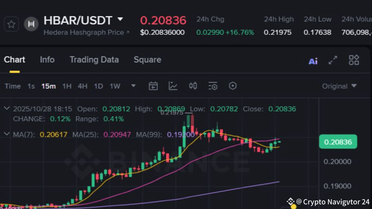 $HBAR ist heute um +16% explodiert, hat den wichtigen Widerstand bei $0,19 durchbrochen und ein neues lokales Hoch nahe $0,22 erreicht 🔥