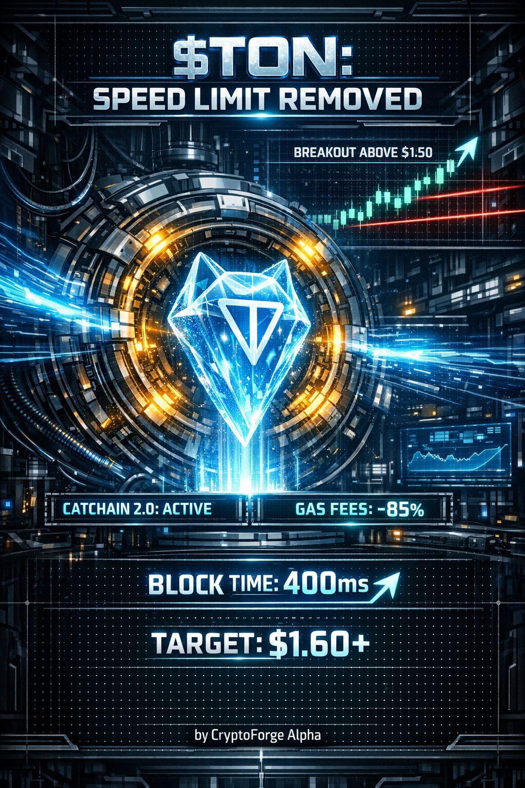 "Інженерний аналіз блокчейну TON на квітень 2026. Оновлення Catchain 2.0 та зниження комісій створюють умови для зростання ціни. Технічний прогноз CryptoForge Alpha з цілями на $1.60 та $1.69."