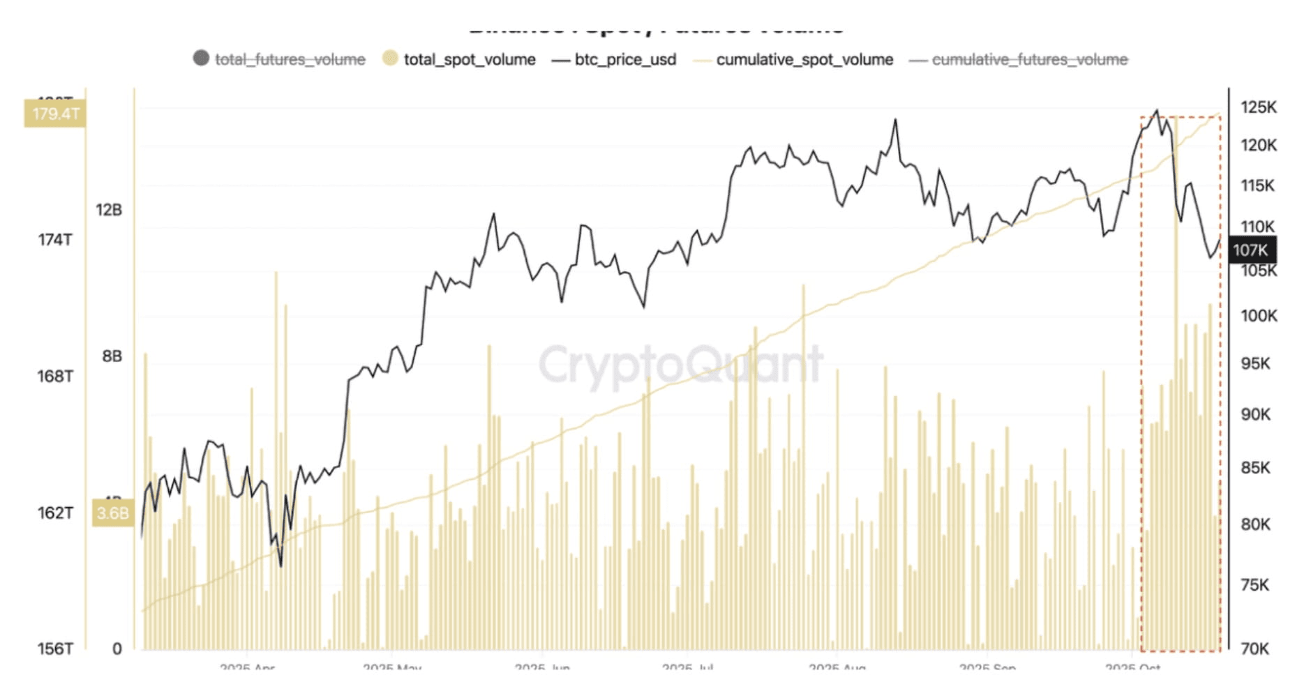 – Theo neue Daten, im Oktober 2025 hat das Spot-Handelsvolumen von Bitcoin US$300 Milliarden überschritten, und allein Binance machte etwa US$174 Milliarden davon aus. TradingView